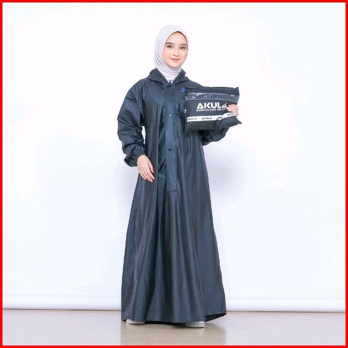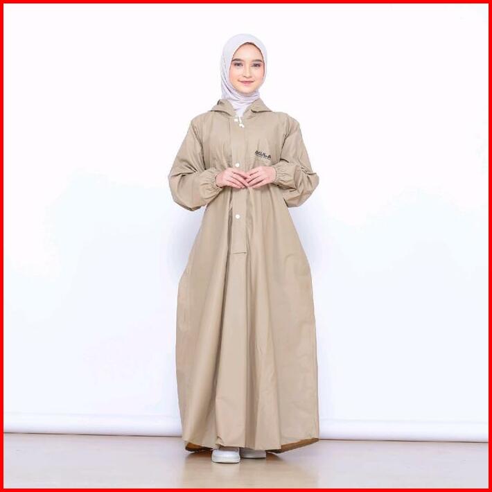 Jas Hujan Gamis Wanita Syar I Akula Bahan Pvc Tebal Elastis Anti Rembes
