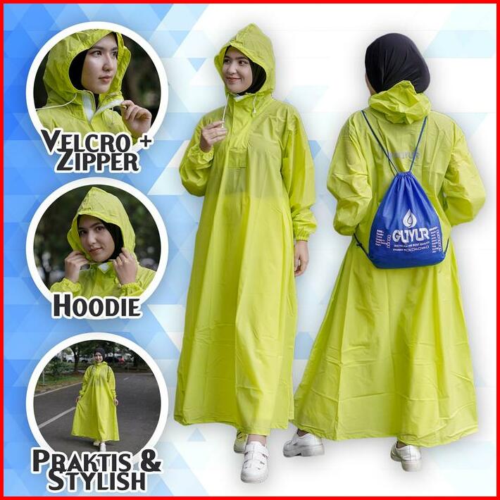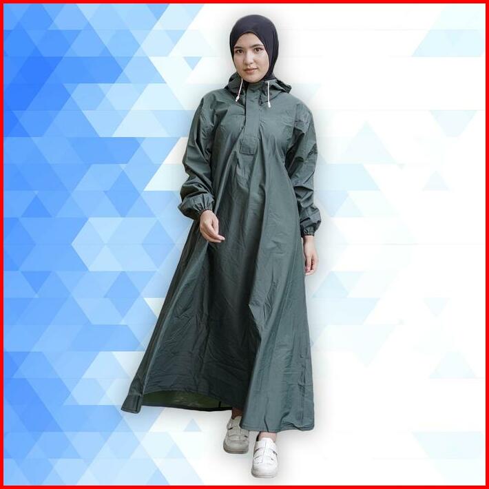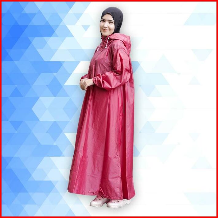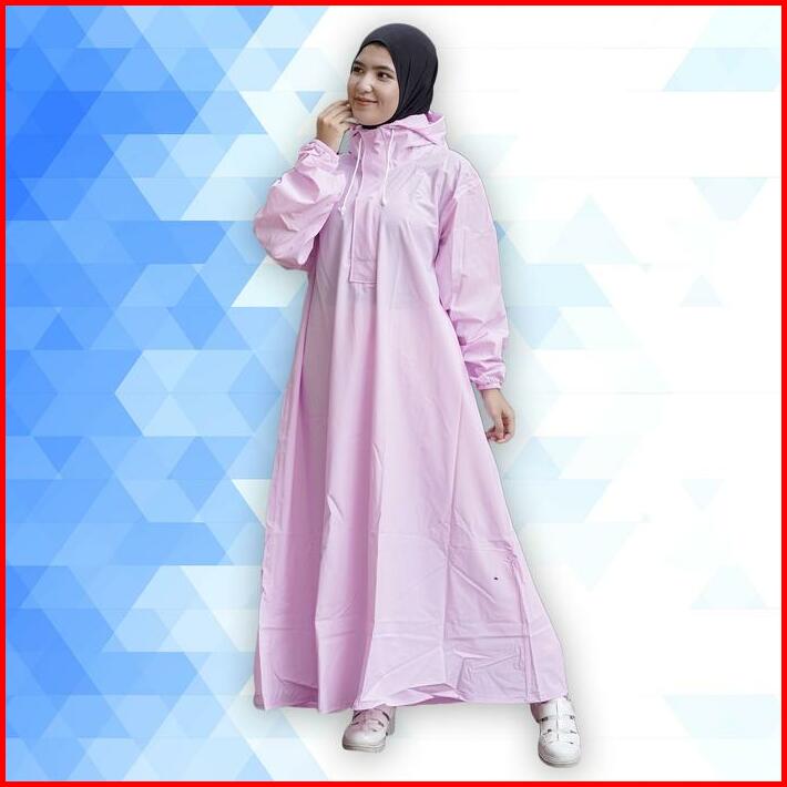 Jas Hujan Jumbo Big Size Raincoat Wanita Muslimah Hijab Model Gamis Terusan Rok Syar I Bahan Impor Waterproof Zipper