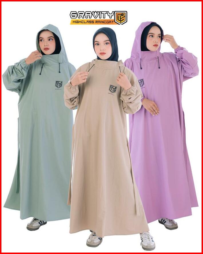 Gravity Jas Hujan Gamis Wanita Muslimah Kuat Tebal Elastis Tahan Air Premium