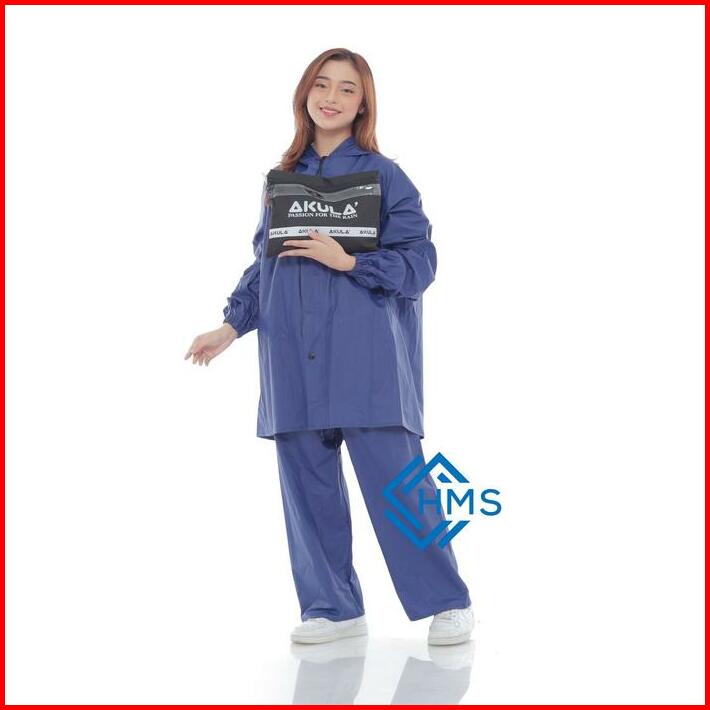 Akula Jas Hujan Pria Wanita Setelan Baju Celana Bahan Pvc Karet 0 25 Anti Rmbes Blue Raincoats