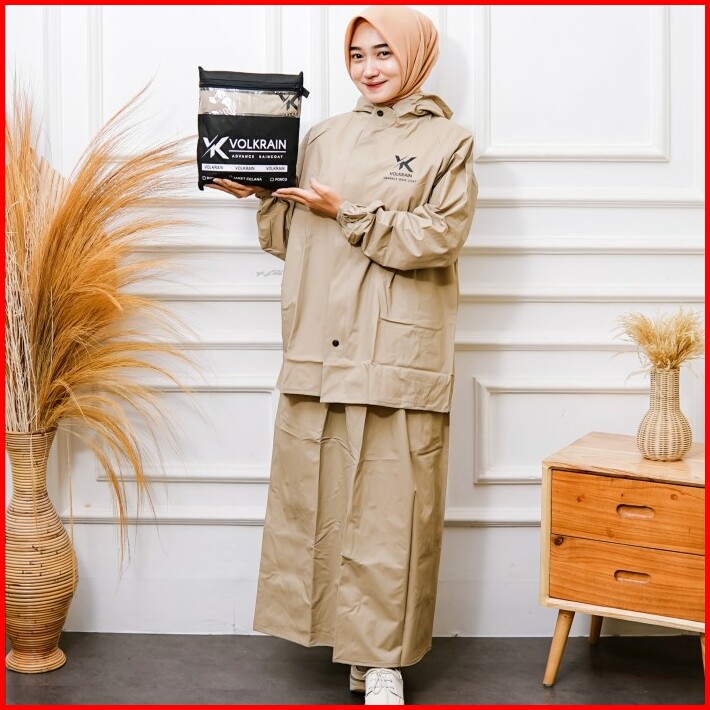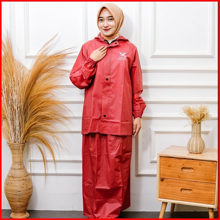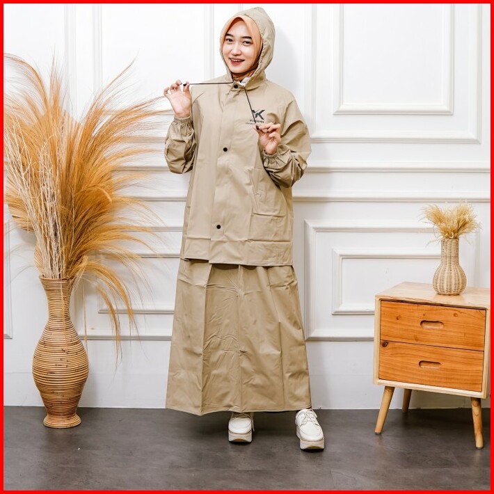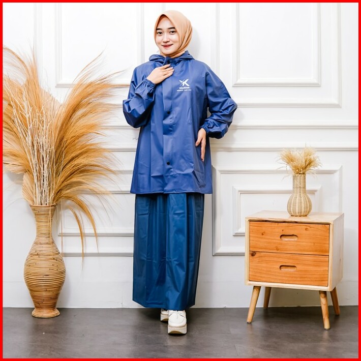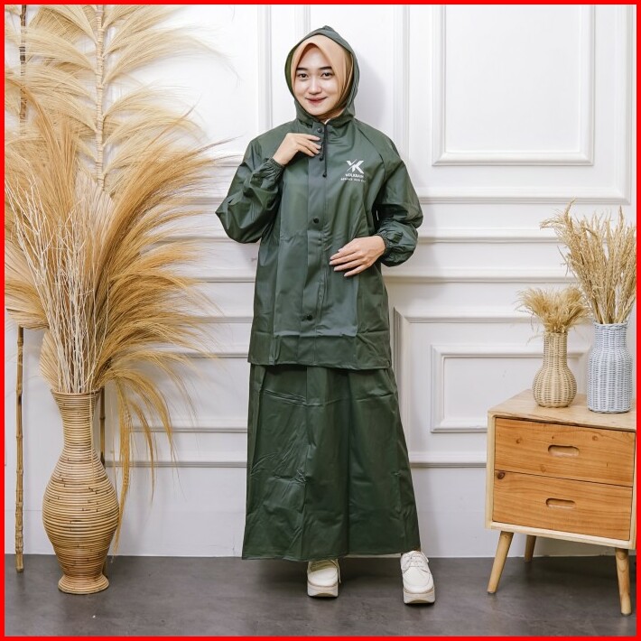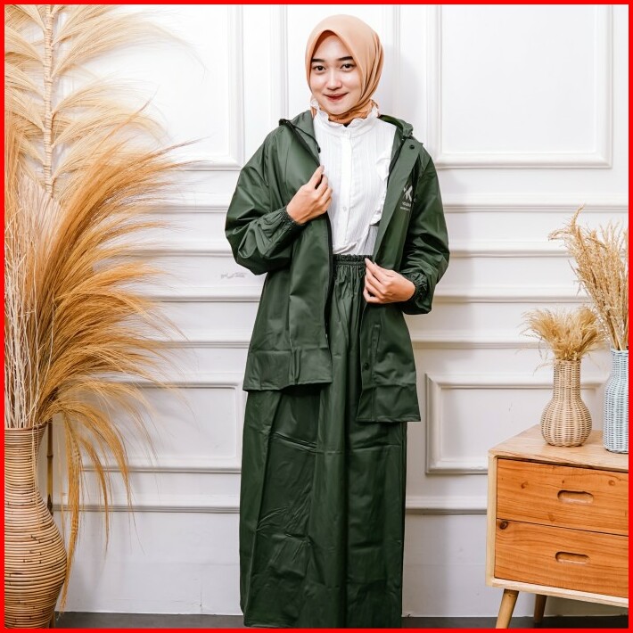 Jas Hujan Wanita Setelan Baju Rok Muslimah Hijab Dewasa Anti Rembes
