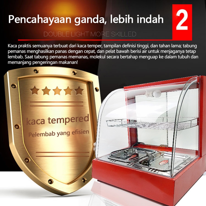 rak makanan warung Rak penyimpanan penghangat kabinet pemanas vertikal multi-fungsi termostat telur tart roti kaca toko