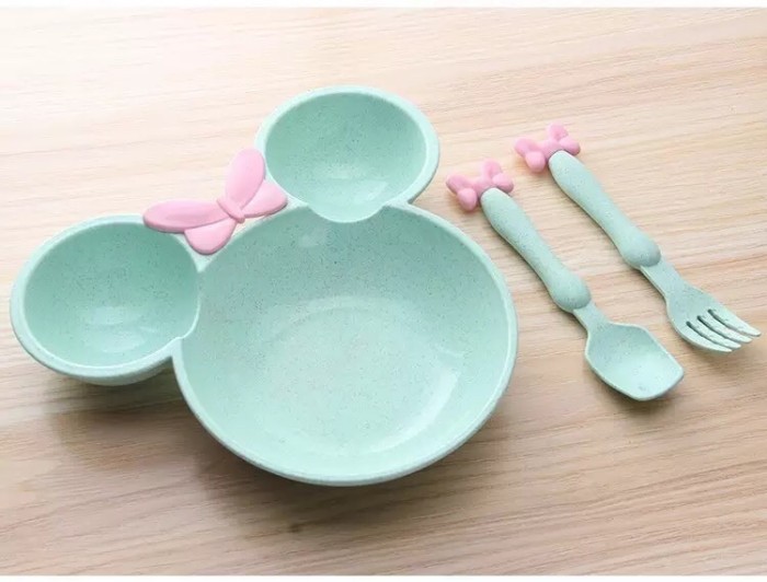 DP 0 MANGKOK SET BAYI MICKEY TEMPAT MAKAN BAYI PLUS GARPU SENDOK 0001 MERAH MUDA