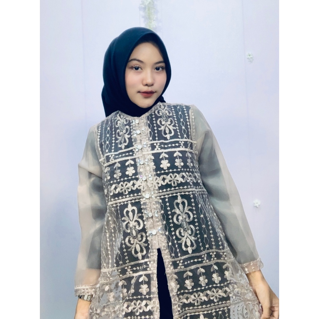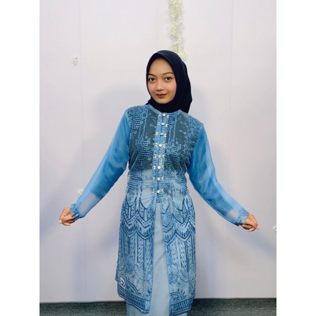 Hadju Tunik Brokat Tali Kancing + Mutiara Diamond / Tunik Brukat Sapto / Baju Kondangan Burkat, Wisuda, Seragaman, Bride