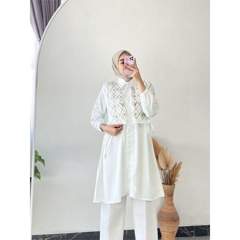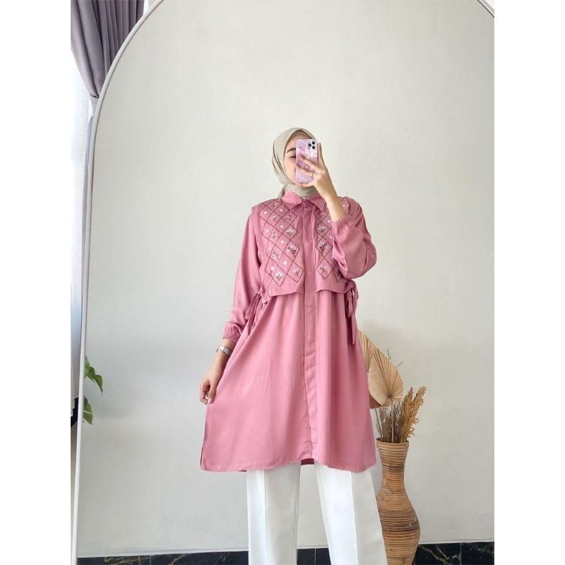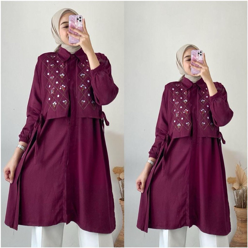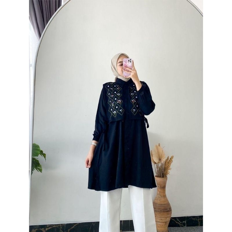 SAVIA TUNIK BORDIR RAYON TWILL MOTIF ROMPI ATASAN WANITA