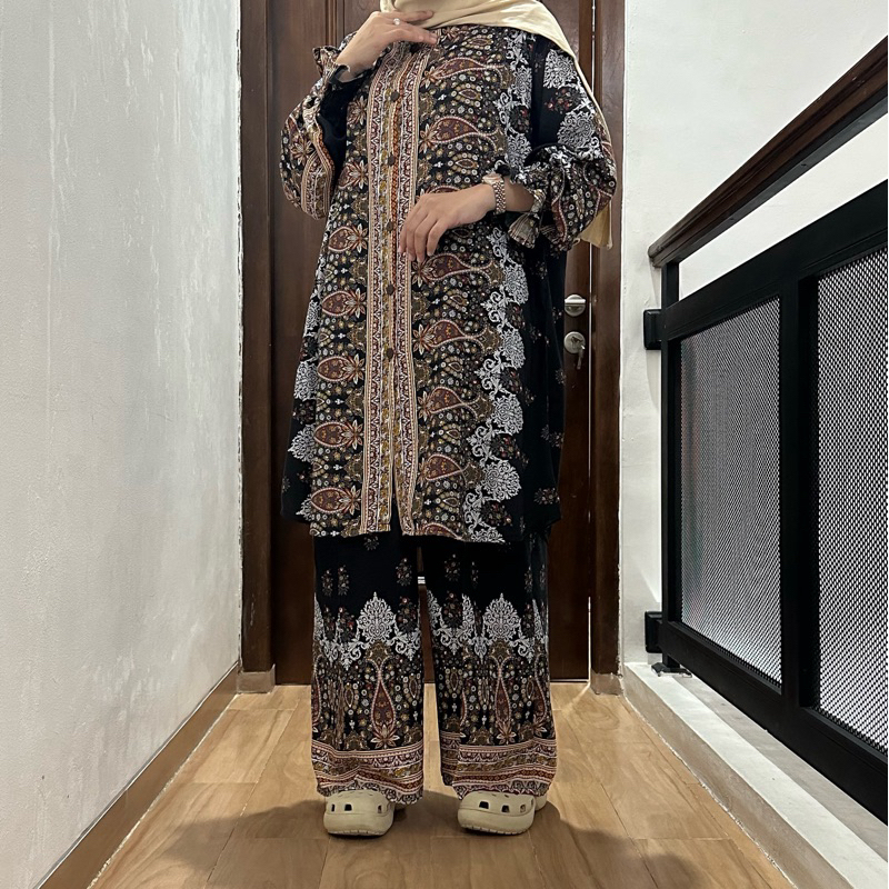 Setelan Tunik Rayon Diamond Wanita/ Oneset Tunik Jumbo Wanita Kekinian/ Set Tunik Busui