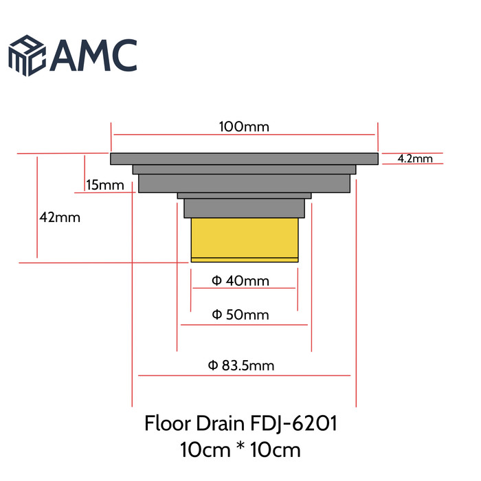 DP 0 AMC FDJ 6201 SARINGAN GOT FLOOR DRAIN STRAINER KAMAR MANDI ANTI BAU 10CM10CM, GUN ASHED