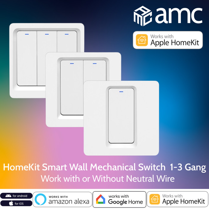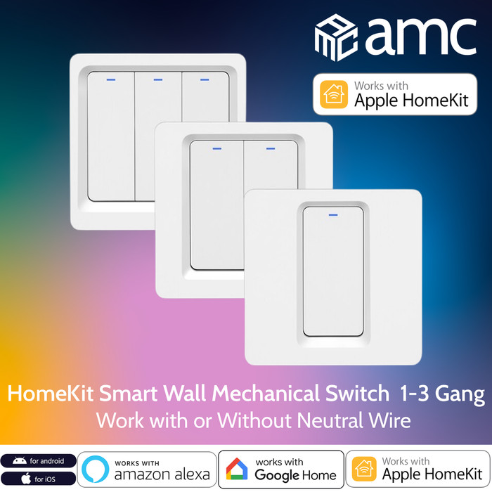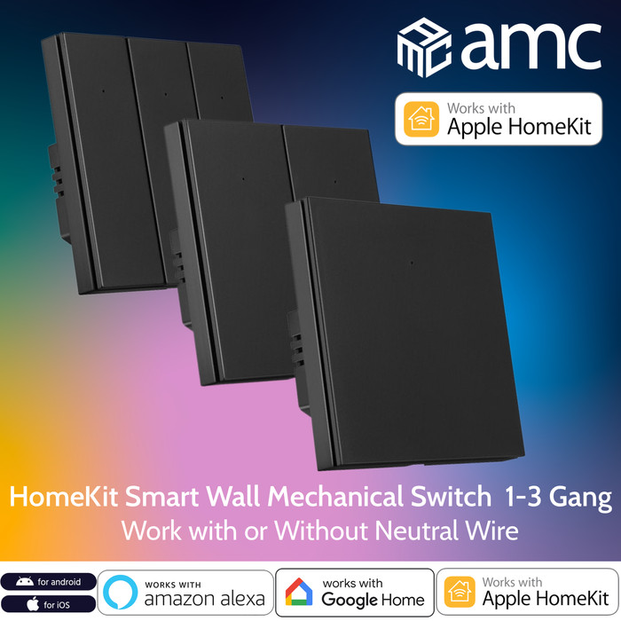 DP 0 AMC HOMEKIT SMART SWITCH EU SAKLAR LAMPU PINTAR WIFI TOMBOL TEKAN HK02HITAM, 1 GANG HOMEKIT
