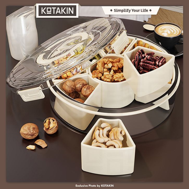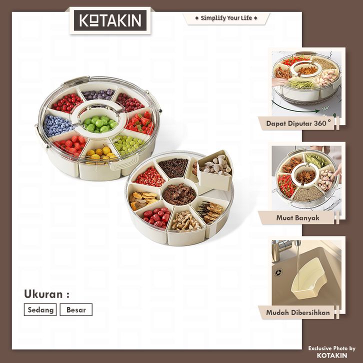 KOTAKIN Toples Bulat Putar Sekat Penyimpanan Makanan Tertutup Wadah Kue Jajan Snack Permen Jelly Serbaguna