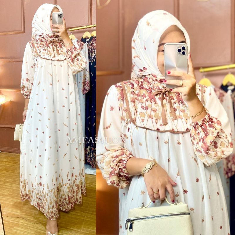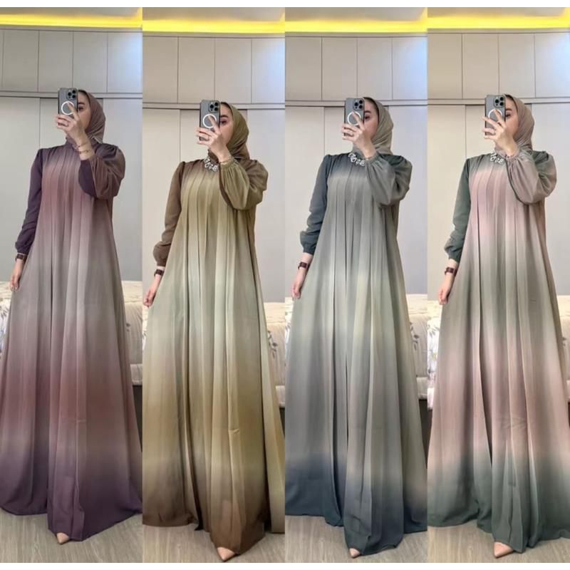 Gamis Ceruty Premium Gradasi Warna /Gamis Ceruty Babidoll Premium/Dress Ceruty Set Hijab Lebaran 2025 Simpel Mewah
