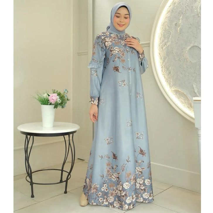 GDTIMA Gamis Wanita Muslim Rekomendasi Baju Lebaran Dress Premium Motif Bunga Lengan Panjang Elegan