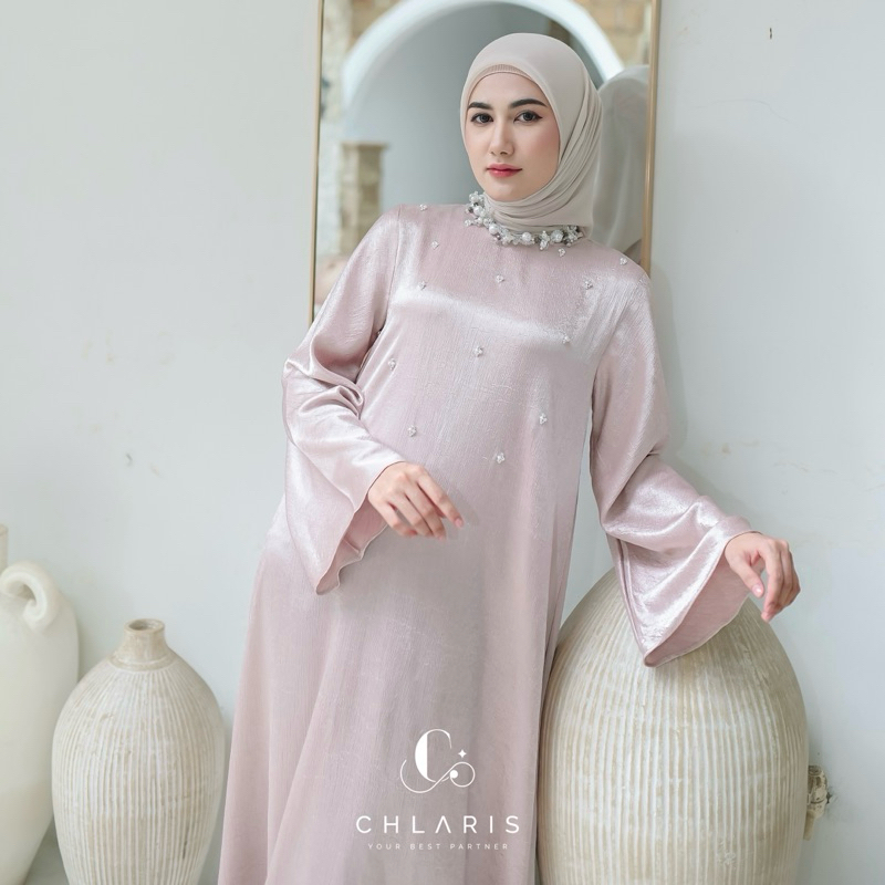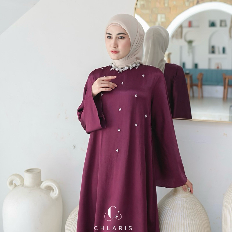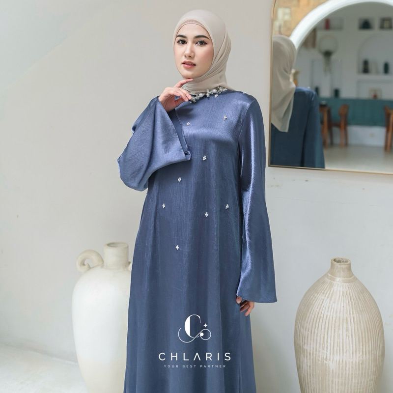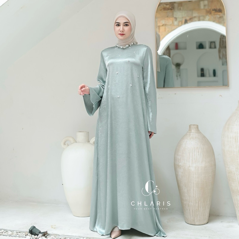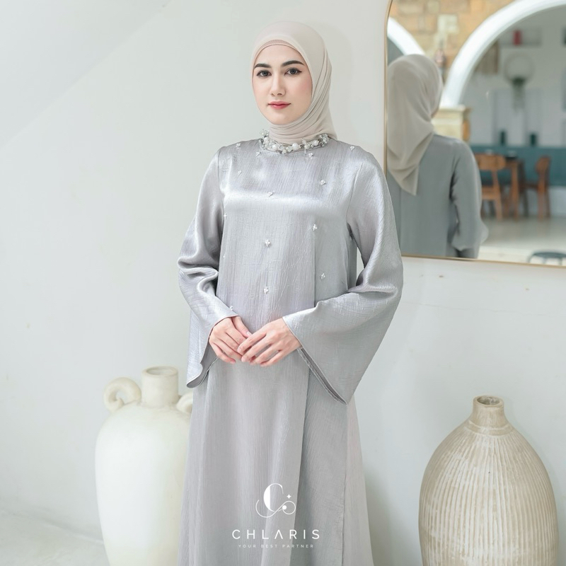 Butikchlaris - Izzana Dress Silk Gamis Lebaran Payet Polos Simple Elegan Nyaman
