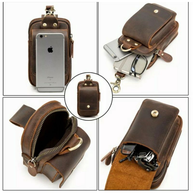Tas Pinggang HP Pria Kulit Asli Tempat HP Kulit Asli Bahan Kulit Sapi Asli - Tas HP Kulit Asli Kulit