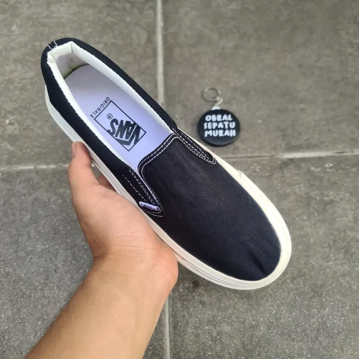 OBRAL SEPATU SLIP ON VAULT OG BLACK WHITE GRADE ORIGINAL 36-43 SEPATU SELOP TANPA TALI HITAM PUTIH