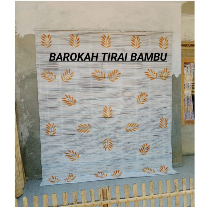 tirai bambu gulung kerey outdoor tirai bambu 2x2 tirai bambu motif bunga orange