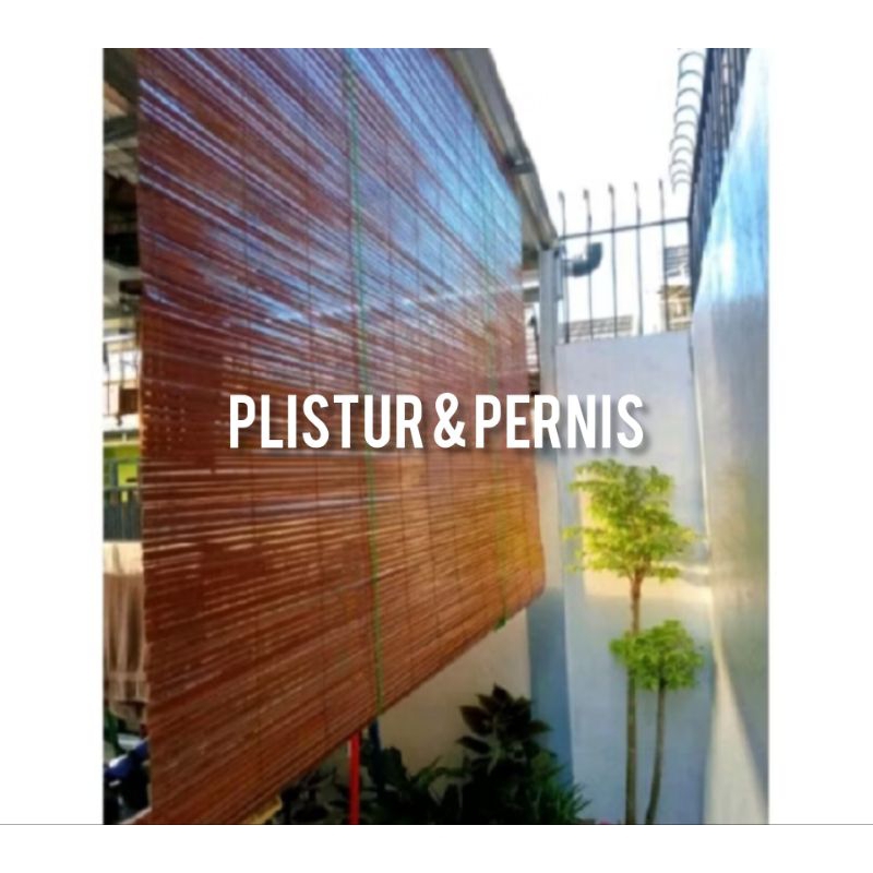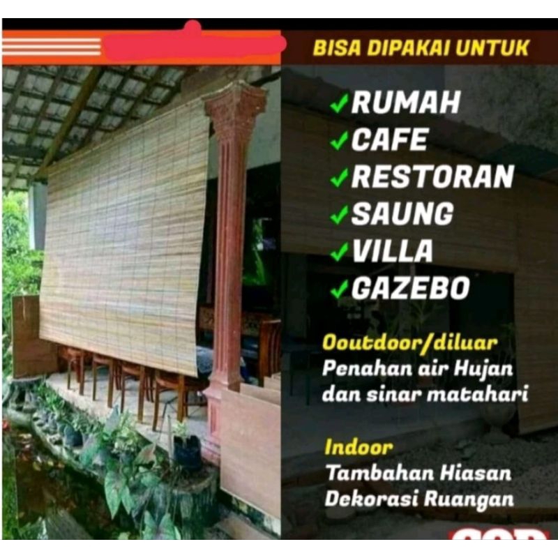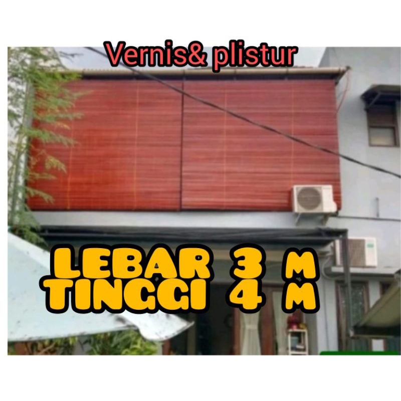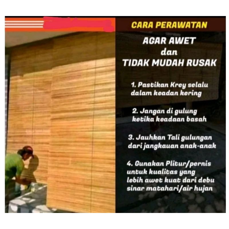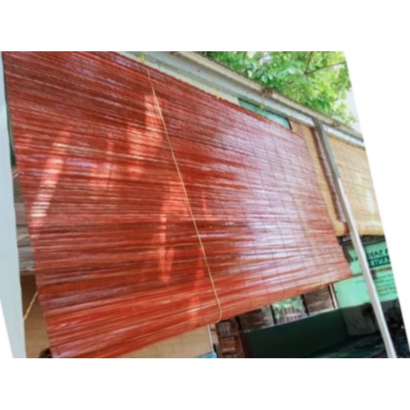 tirai krey kulit bambu plistur UK 3x4m lengkap tali penggulung katrol besi asli