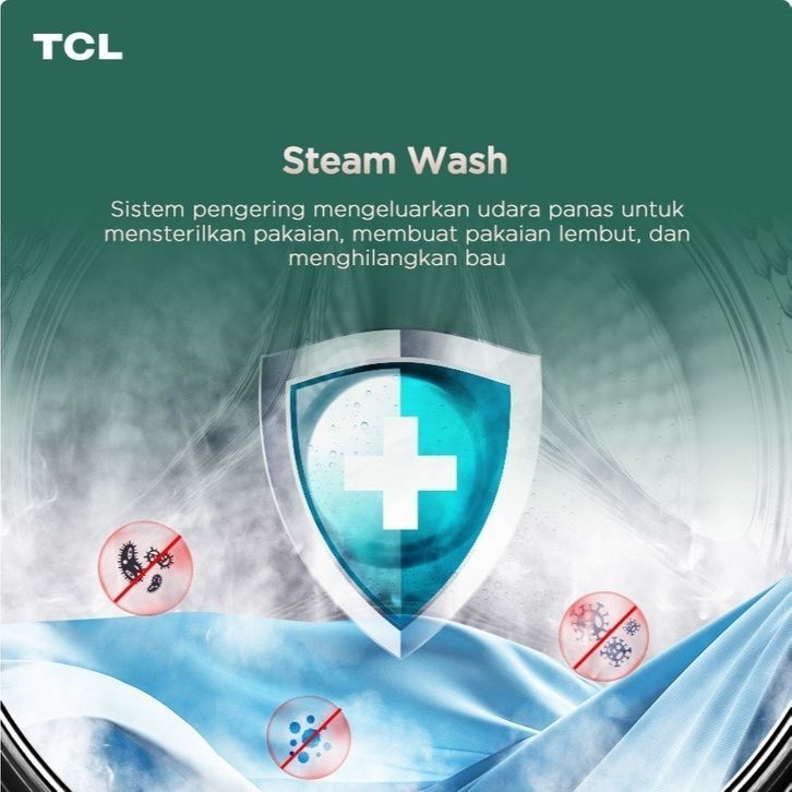 TCL Ecorora Mesin Cuci Front Loading Washer Dryer 10.5 kg - 100. Kering - Bakteri Hilang 99. - 16 .e Cuci - Drum Clean