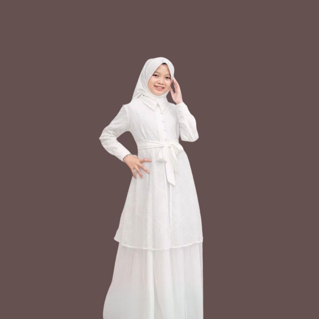 Gamis Muslim Anak Perempuan Usia 10-11-12-13-14-15 Tahun Padma Syari Kids Bahan Crinkle Airflow Mix Brukat