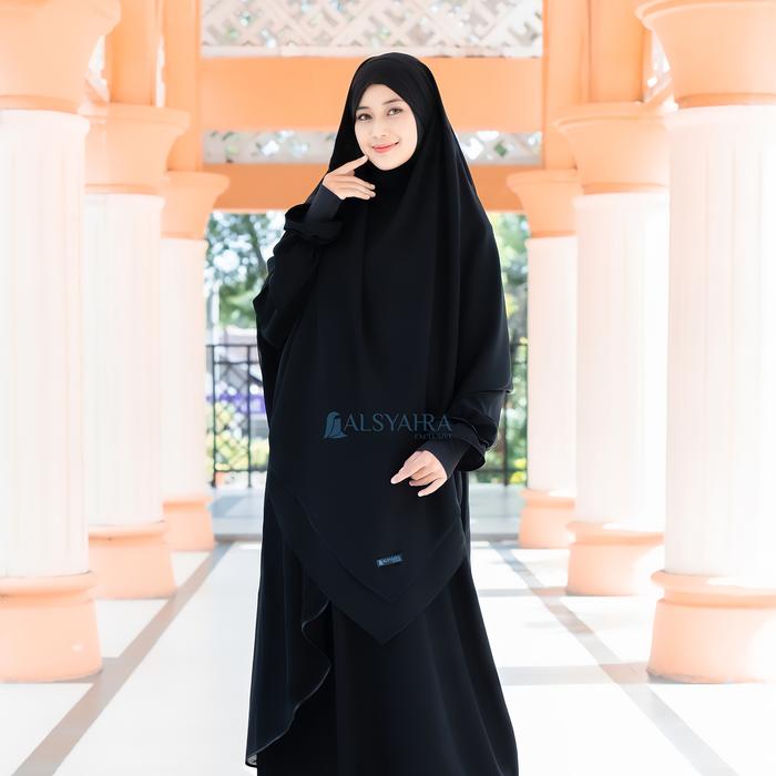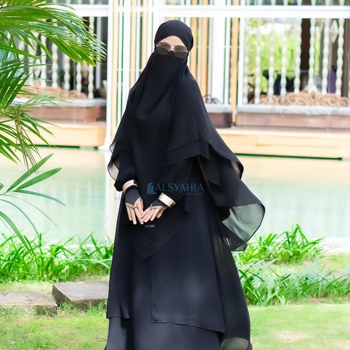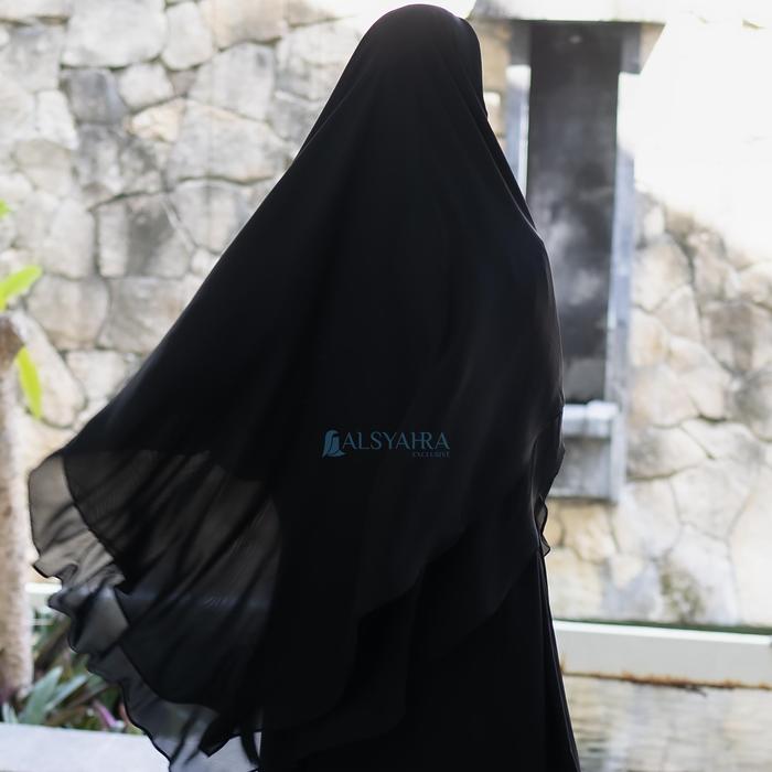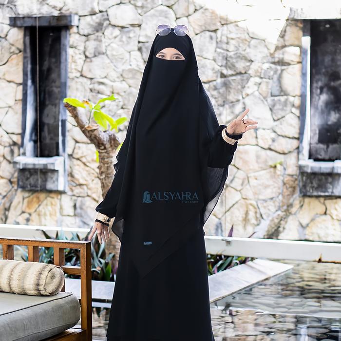 Alsyahra Exclusive French Khimar Bandana Ayumi Size XL Sifon Silk Jetblack 4 Style Khiban Muslim Syari Jilbab