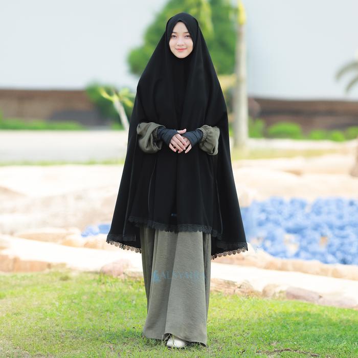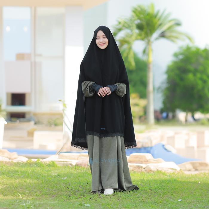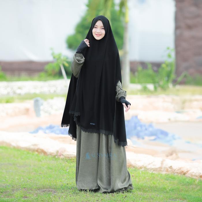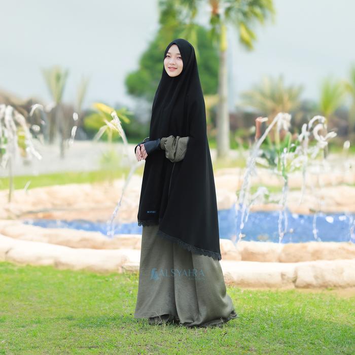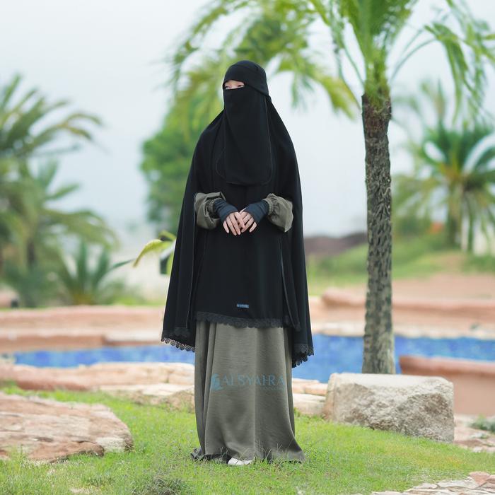 Alsyahra Exclusive Set Khimar Handsplit Bisban Alshams Niqab Bandana Poni Jetblack Muslim Jilbab Instan Wanita Syari