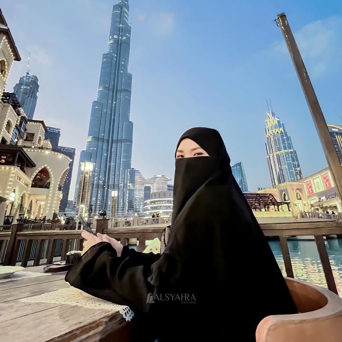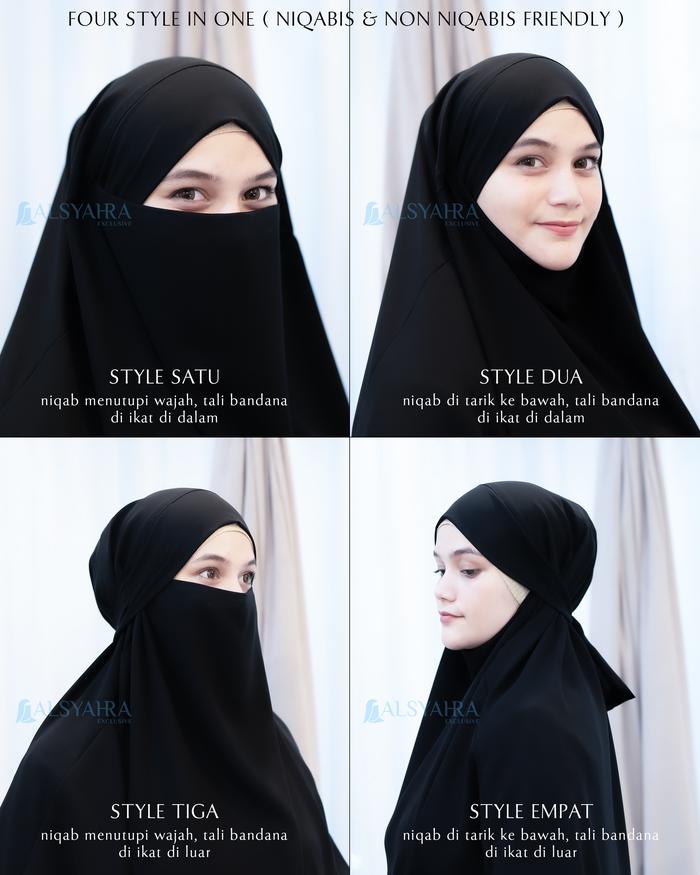 Alsyahra Exclusive French Khimar Bandana Ayumi Size L Sifon Silk Jetblack 4 Style Khiban Muslim Syari Jilbab