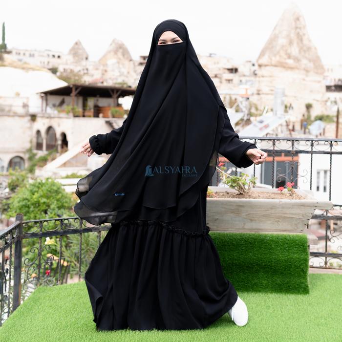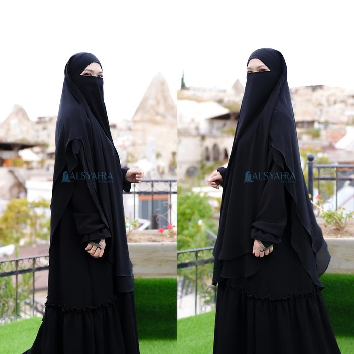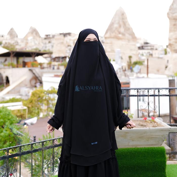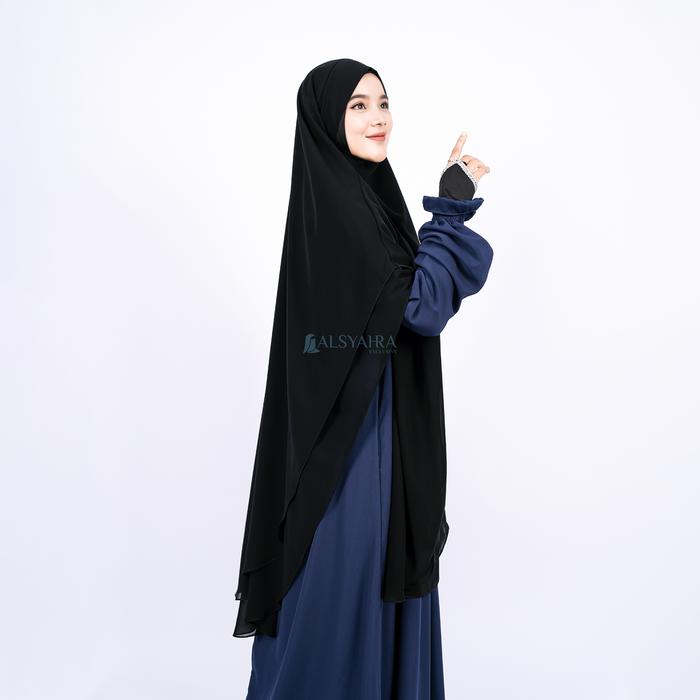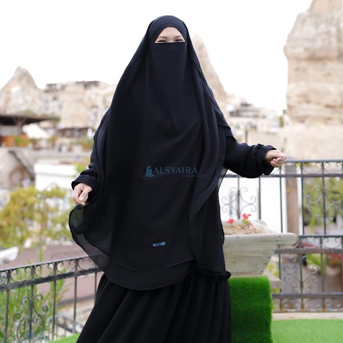 Alsyahra Exclusive French Khimar Bandana Handless Fatimah 4 Style Sifon Silk Jetblack Size XL Khiban Muslim Jilbab Syari