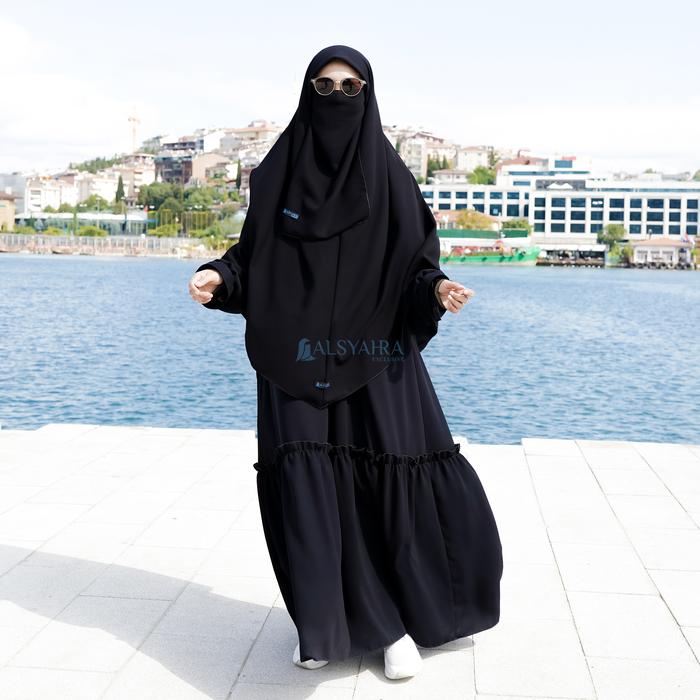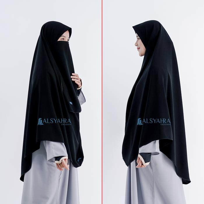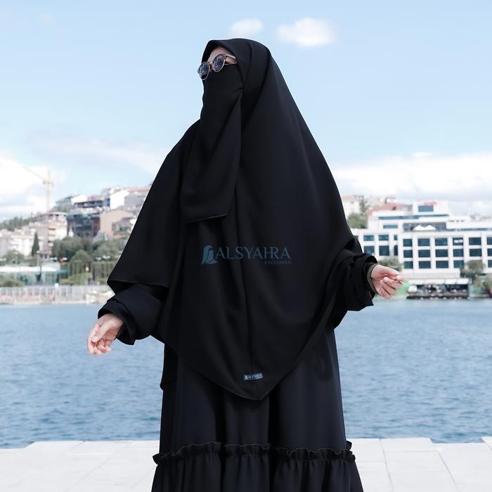 Set Khimar Instan Aisyah Cadar Tali Jetblack Alsyahra Exclusive Syari Jilbab Kerudung Muslim Wanita