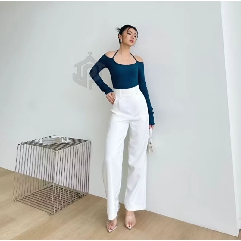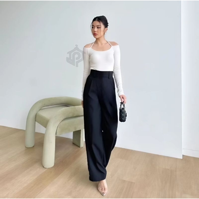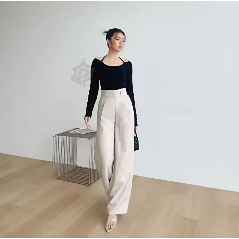 Celana Panjang Kulot Highwaist Pants Anti Kusut Bahan Polyster Kasual Celana Wanita Kasual Formal