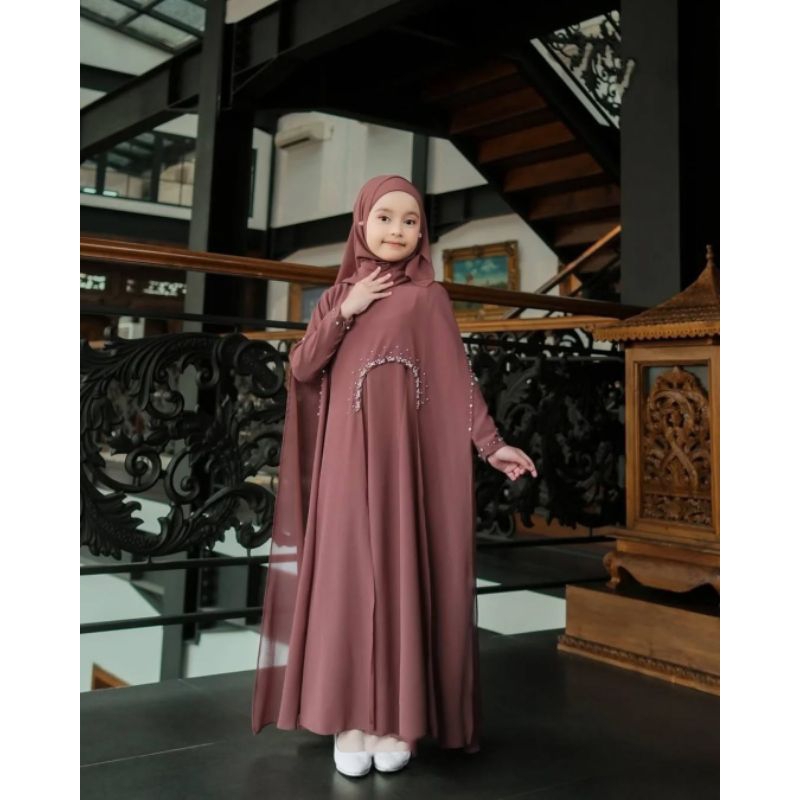 Abaya Luna Kids Gamis Anak Terbaru Bahan Ceruty Baby Doll Mix Payet 2 Layar