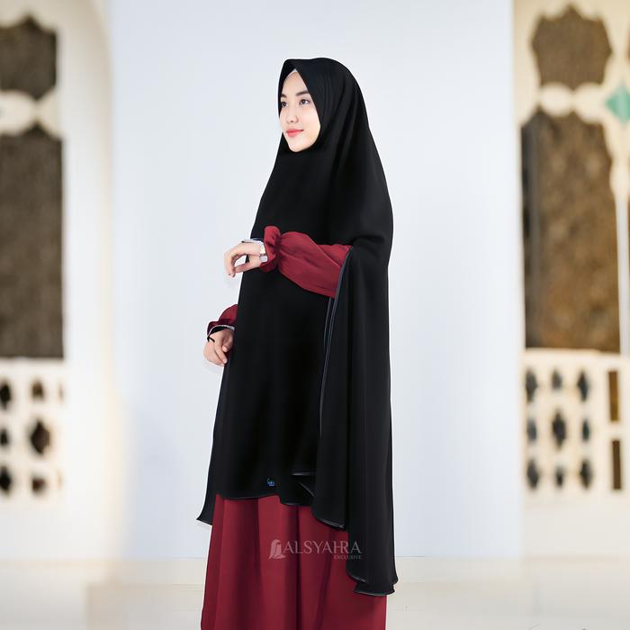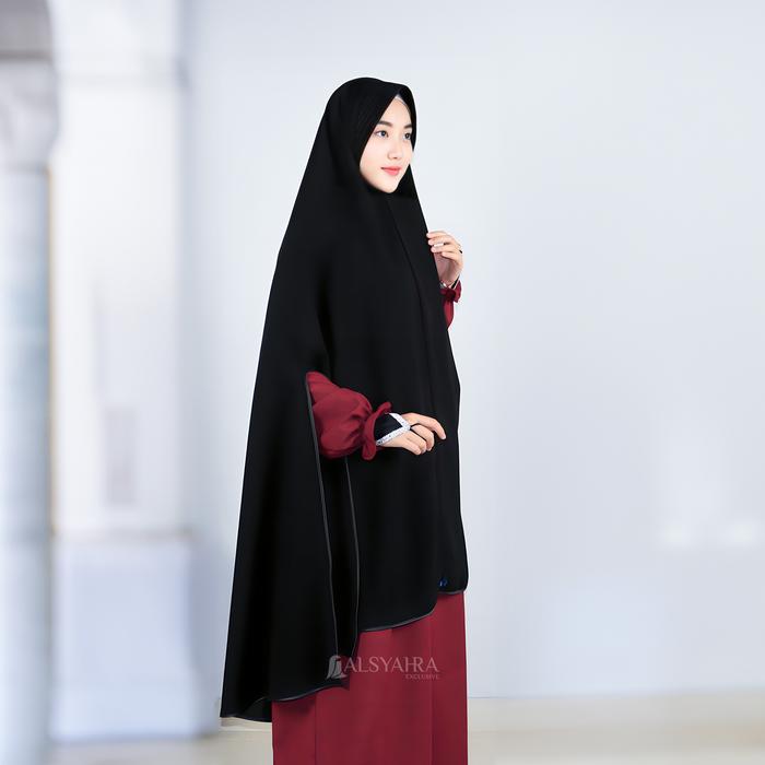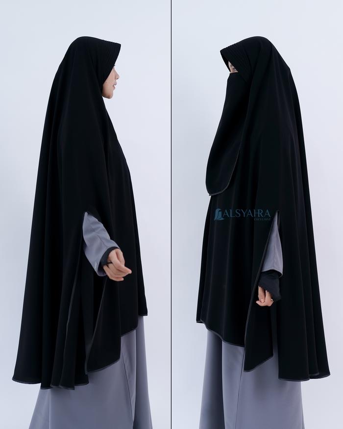 Alsyahra Exclusive Set Khimar Handsplit Pet Cadar Tali Bisban Hitam Jetblack XXL Jilbab Panjang Syari Muslim Instan
