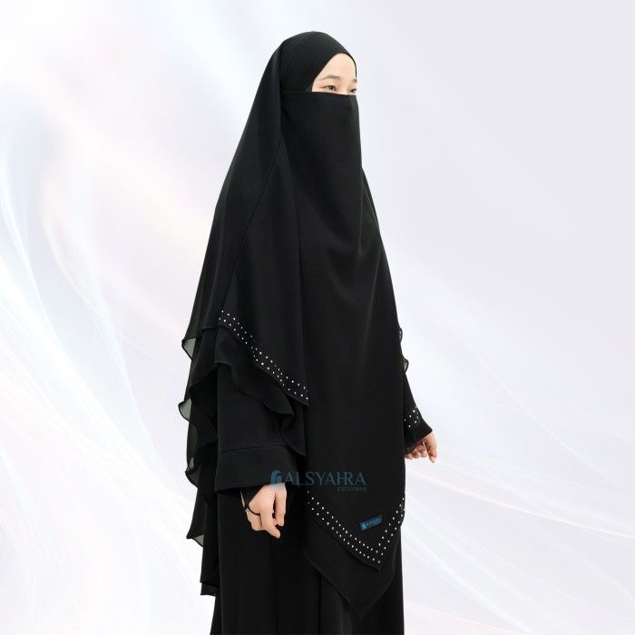 Alsyahra Exclusive French Khimar Ayumi Andalusia 2 Layer Sifon Silk Jetblack Size XL Jilbab Cantik Muslim Hitam
