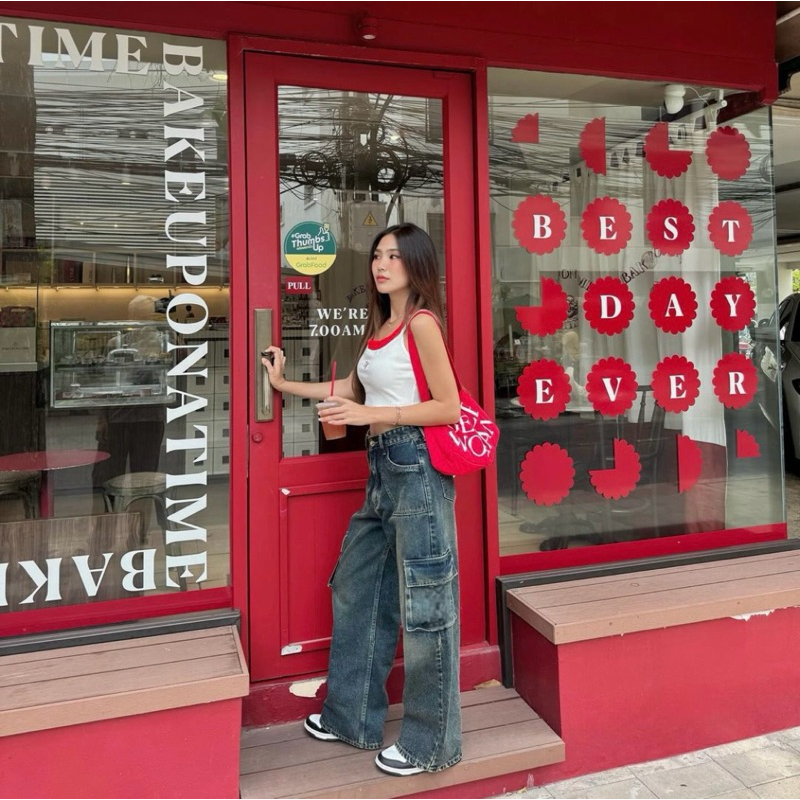 TheGirlHouse - CELANA CARGO HIGHWAIST LOOSE JEANS BAGGY WANITA HERITAGE