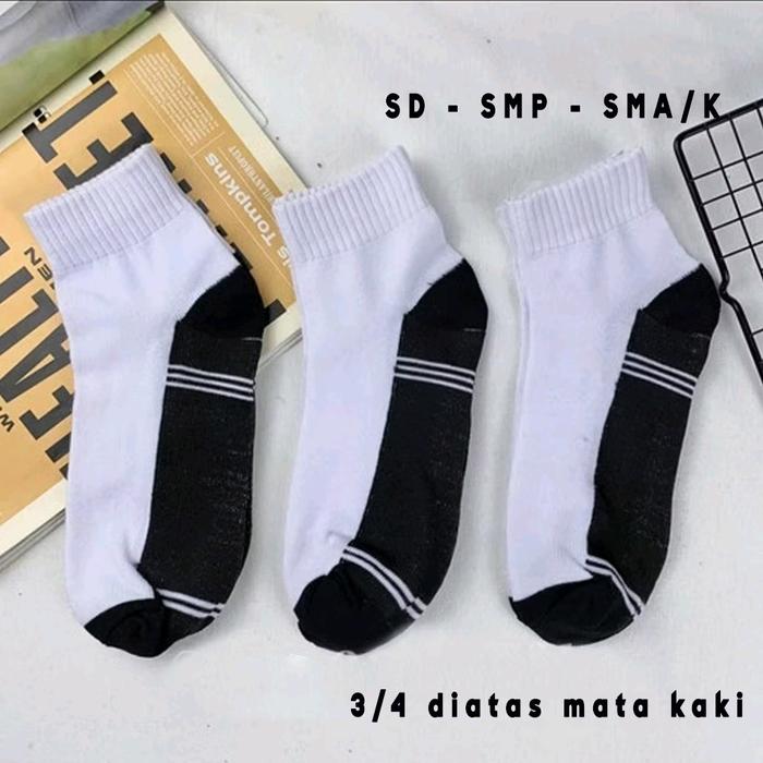 PROMO 6 PASANG KAOS KAKI ANAK SEKOLAH PENDEK 3 4 SD SMP SMA PRIA DAN WANITA HITAM PUTIH 3 4 PENDEK 3 PASANG SD