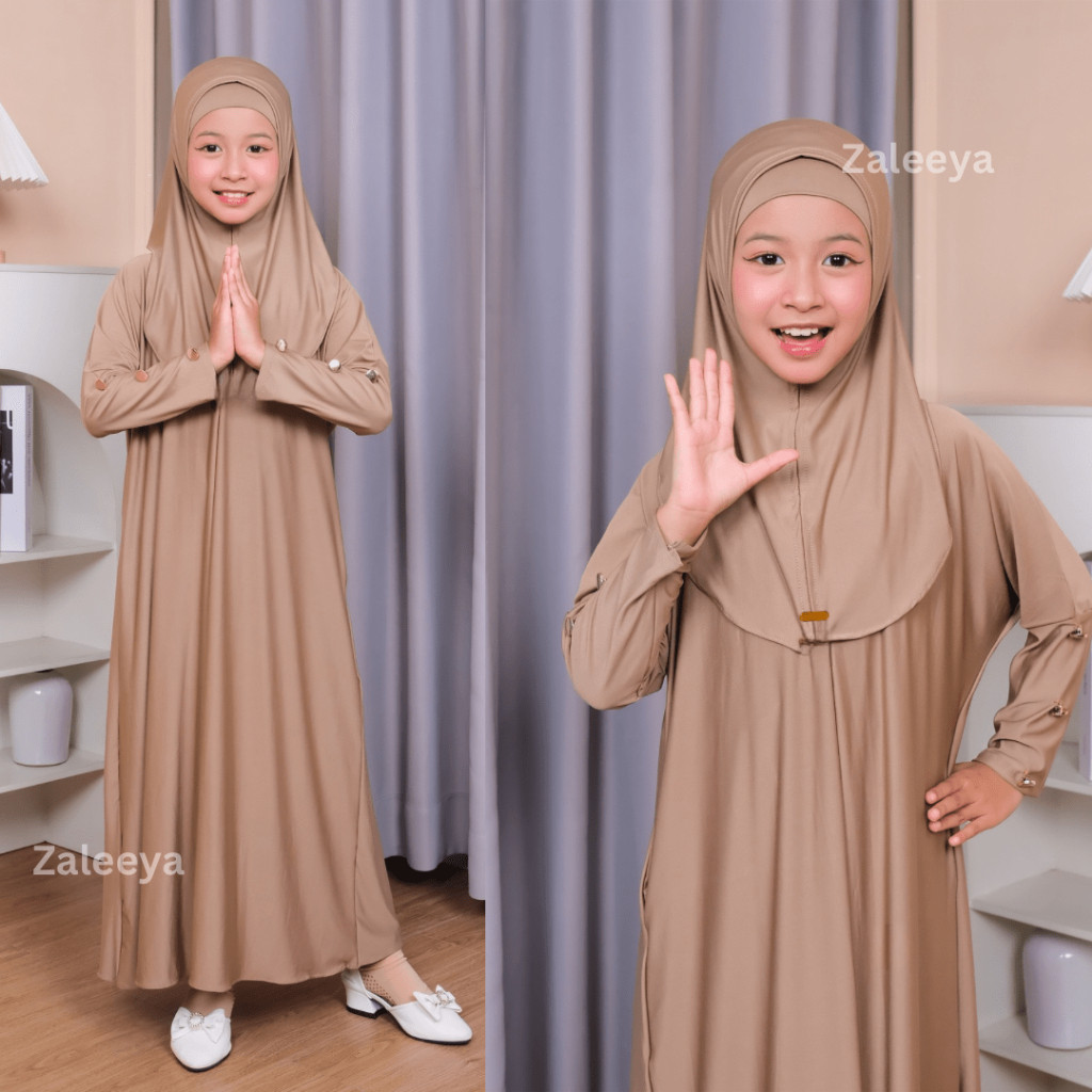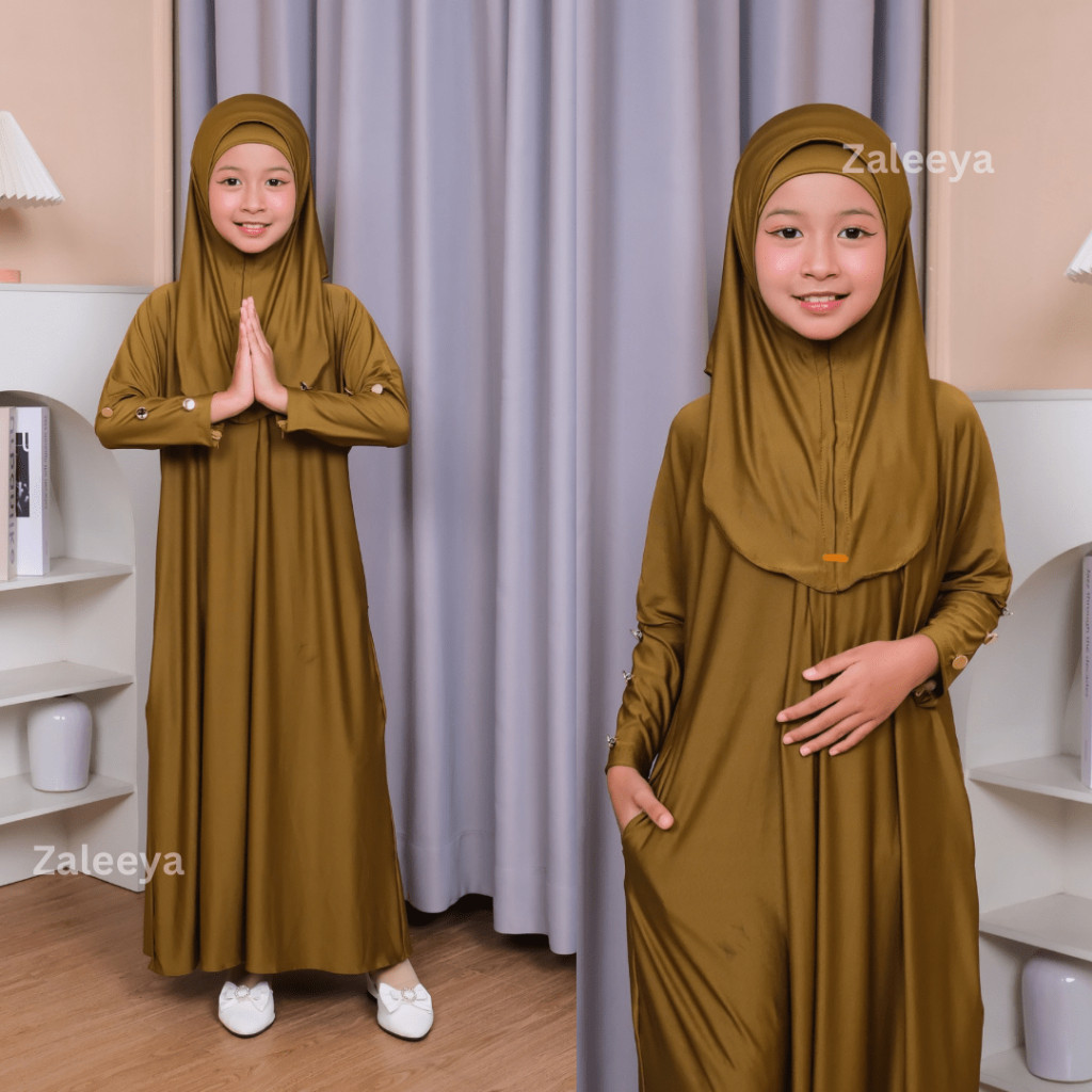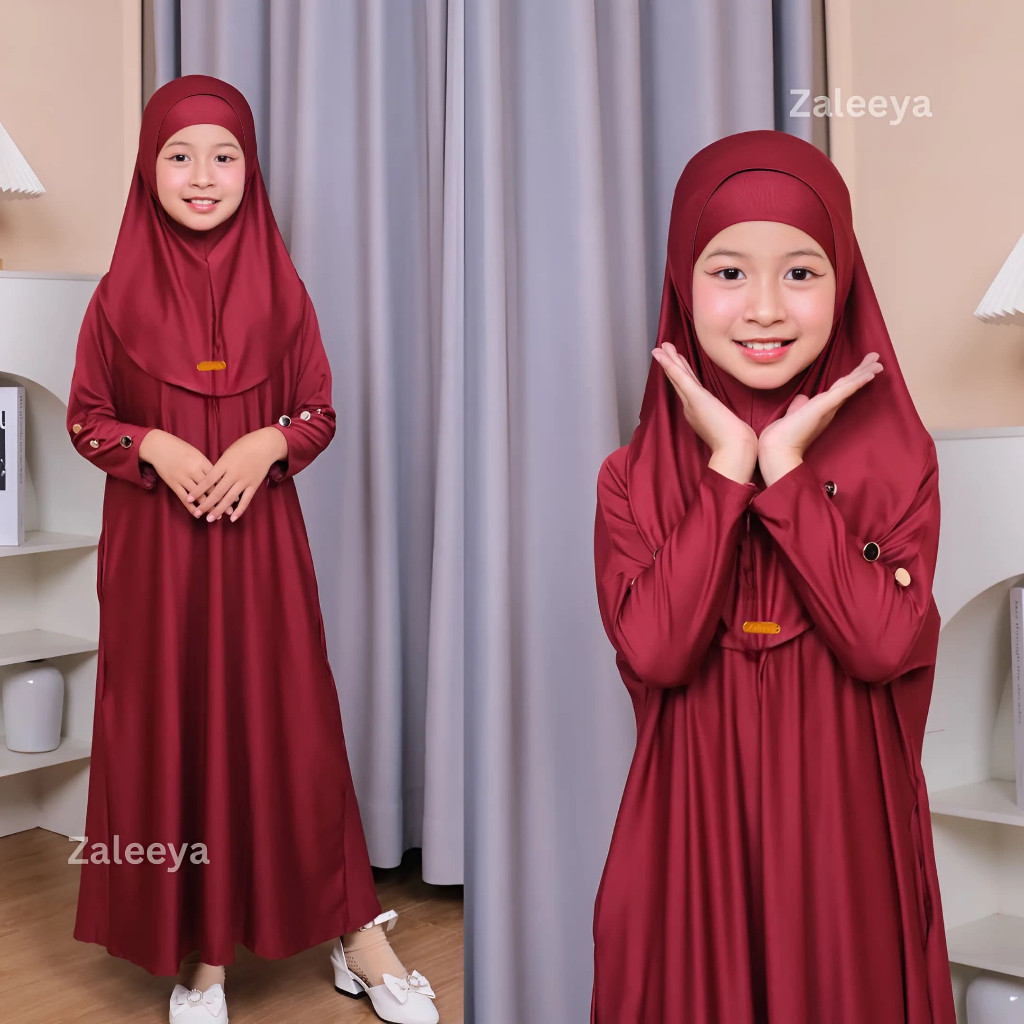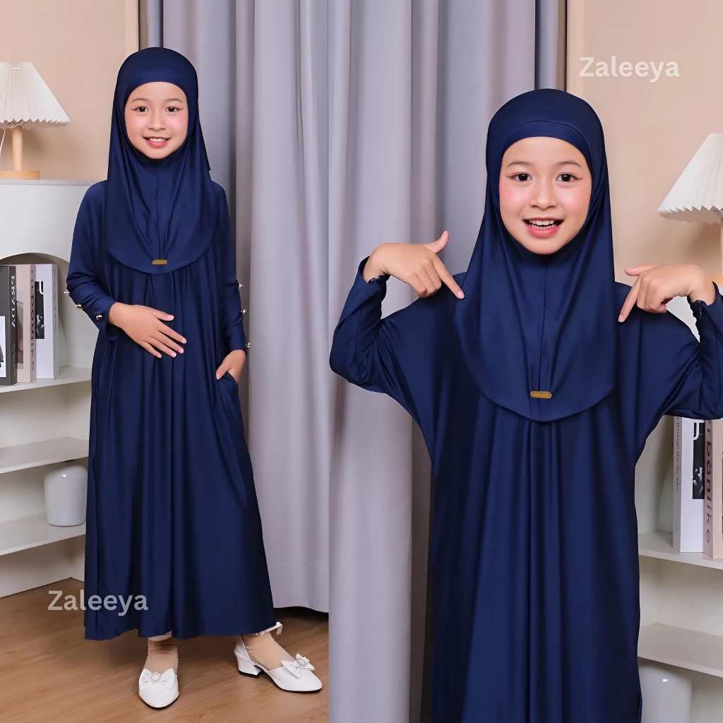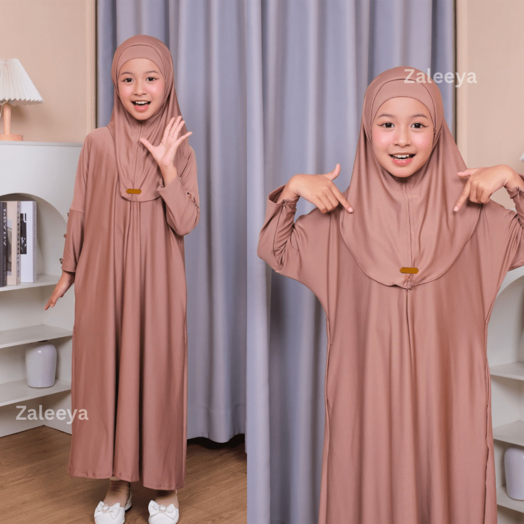 Gamis Anak Perempuan 3-8 Tahun Jersey Set Hijab Abaya Batwing Model Terbaru Lebaran