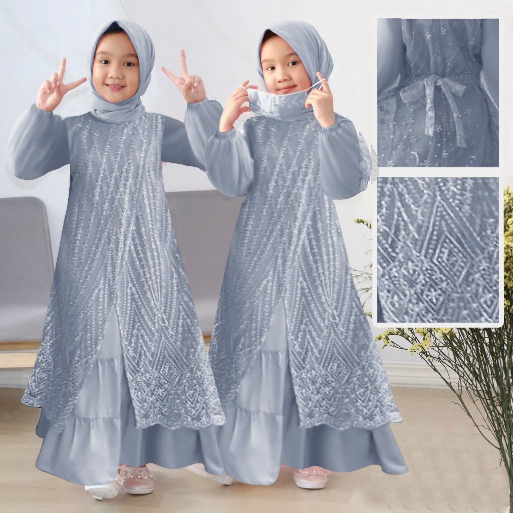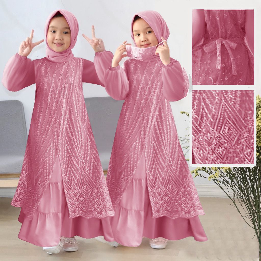 Gamis Anak Brukat Perempuan Muslim Kids Kekinian Terbaru Casual Fashion Olivia Kid Maxi Mutiara Panjang Tile Kombinasi D