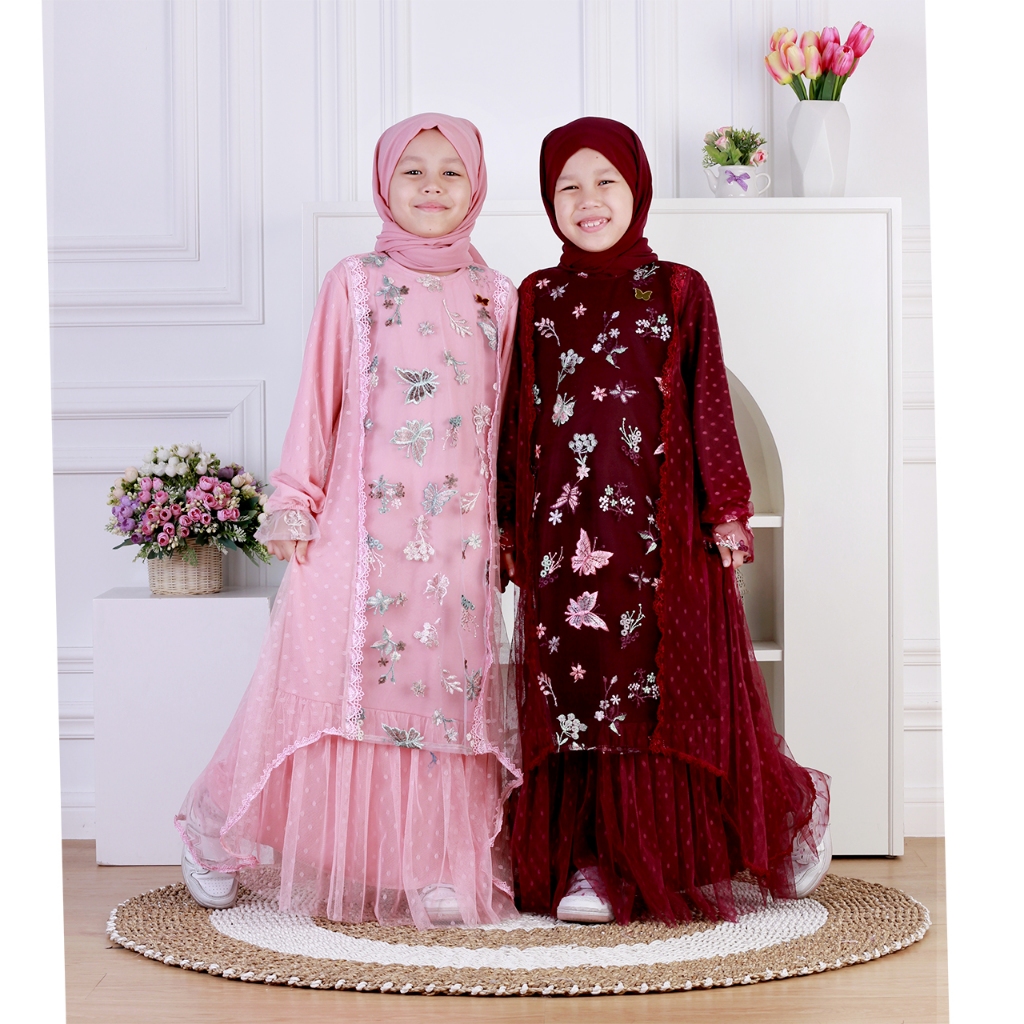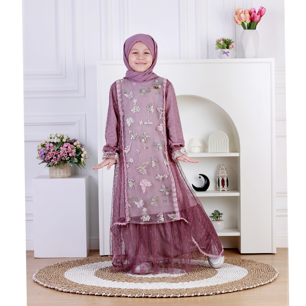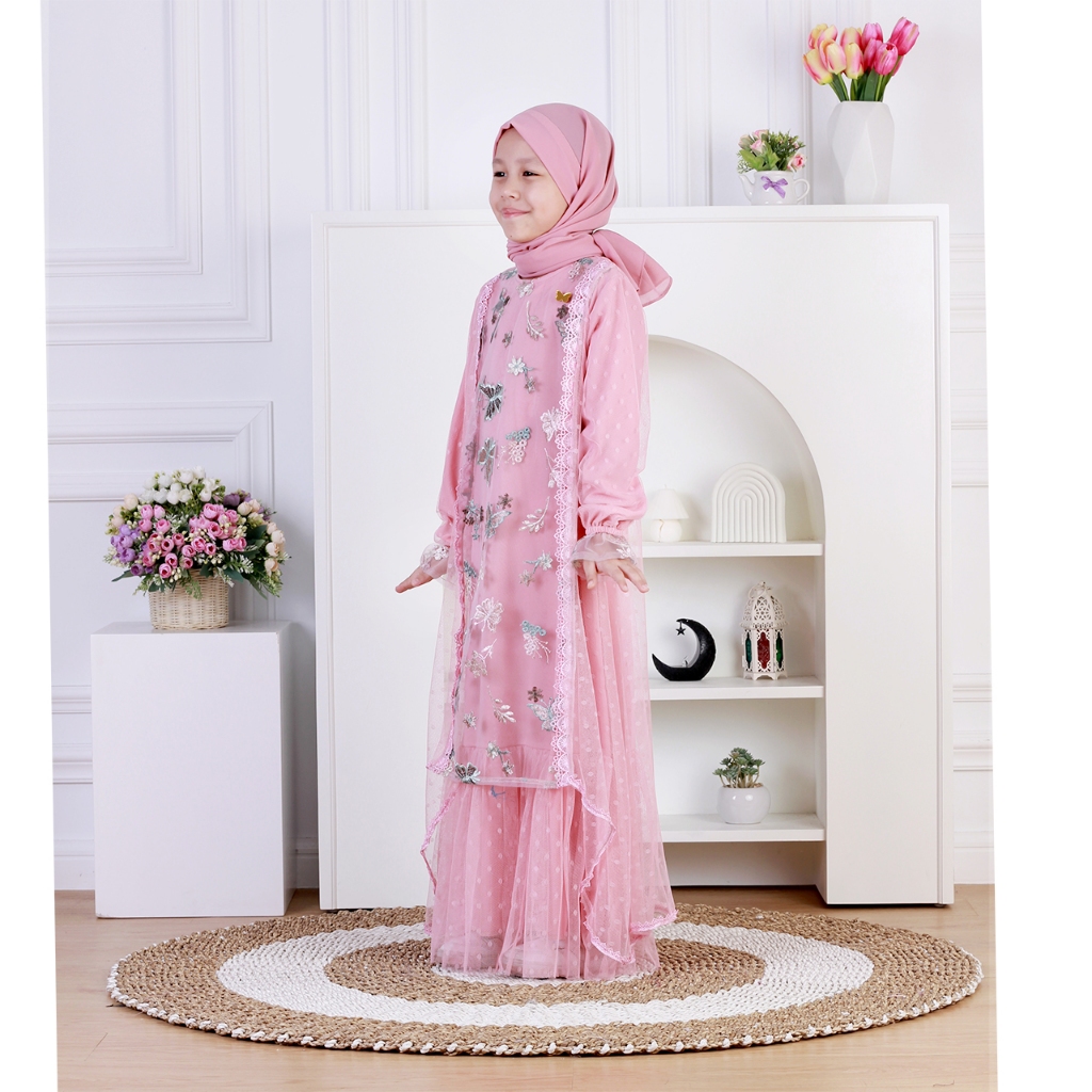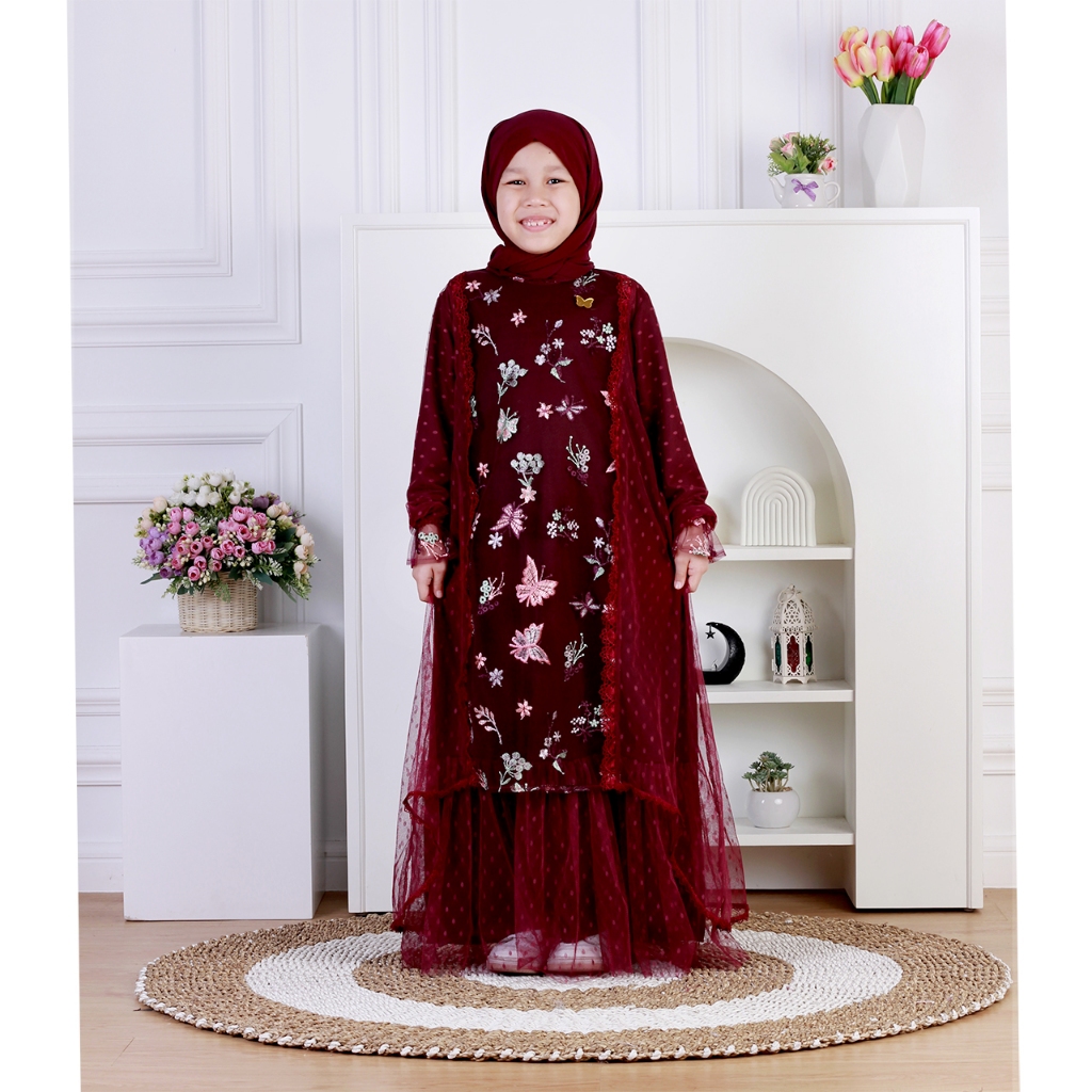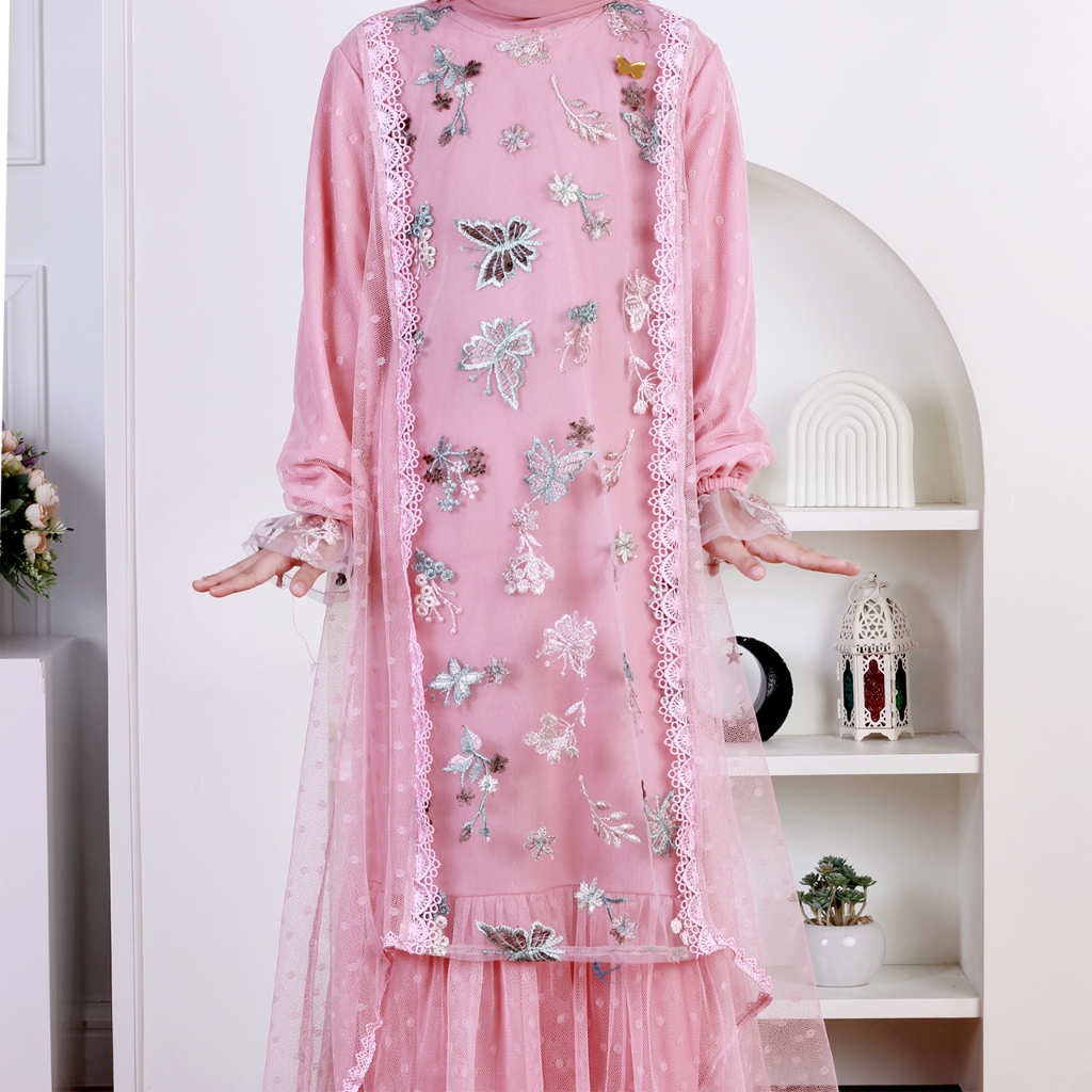 Dungdungkids Gamis Anak Ruqa Tile Bordir Mix Tile Dot Free Pashmina Tali 3 - 14 Tahun