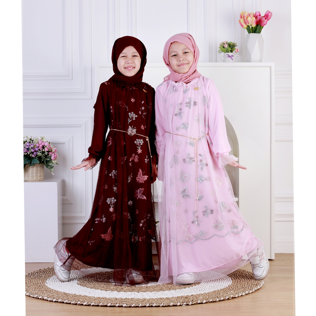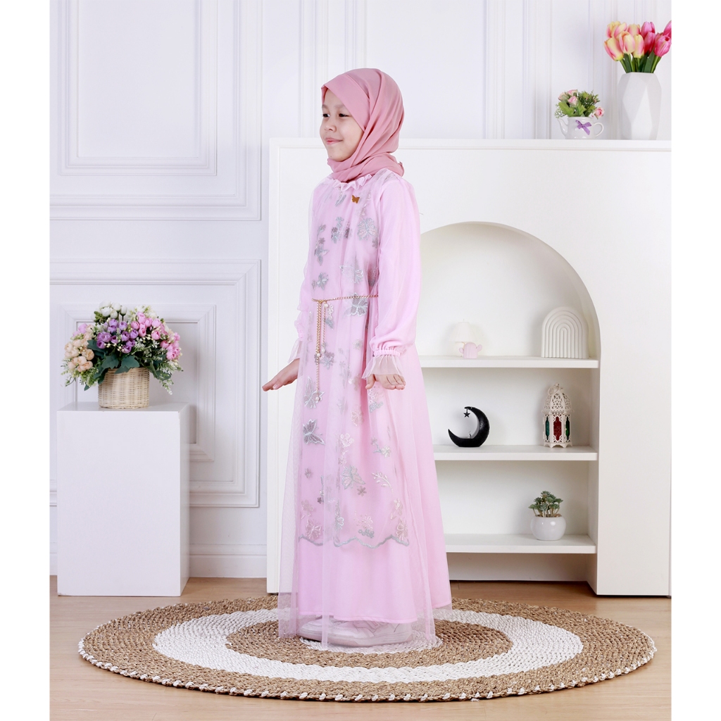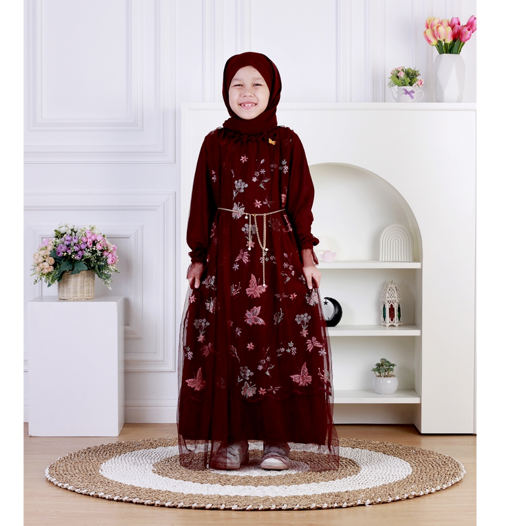 Dungdungkids Gamis Anak Celmira Tile Bordir Mix Tile Polos Free Belt Pashmina Tali 3 - 14 Tahun