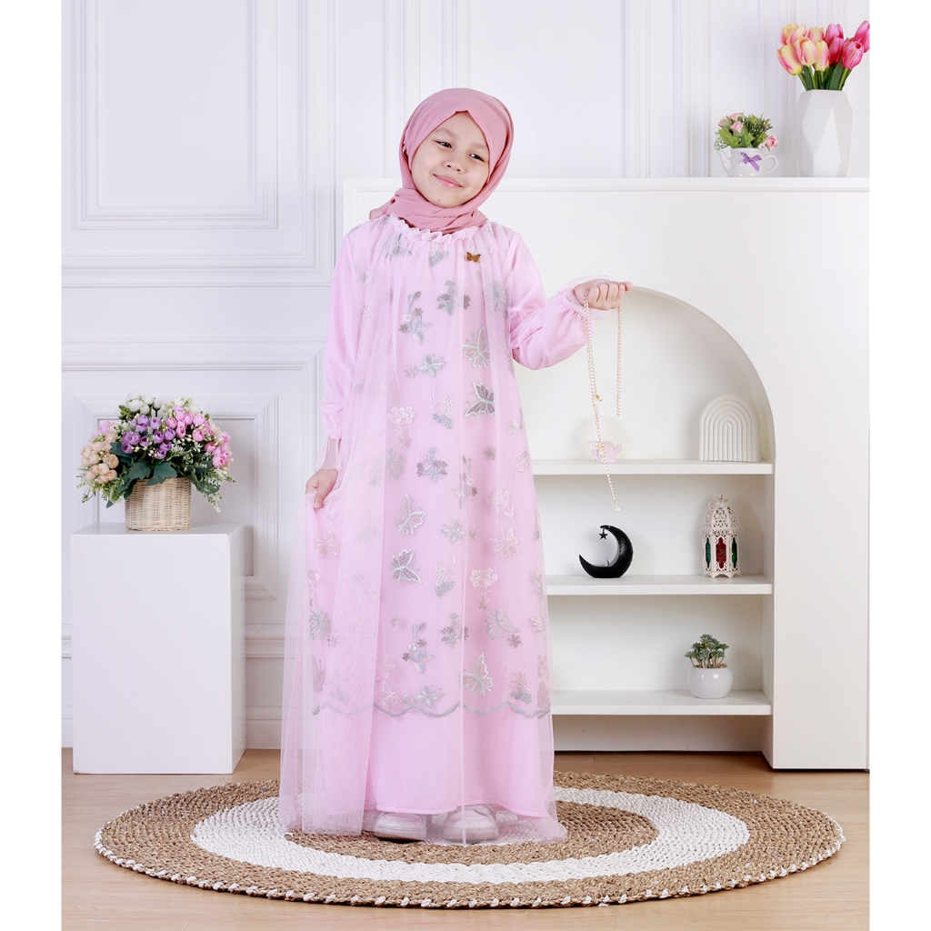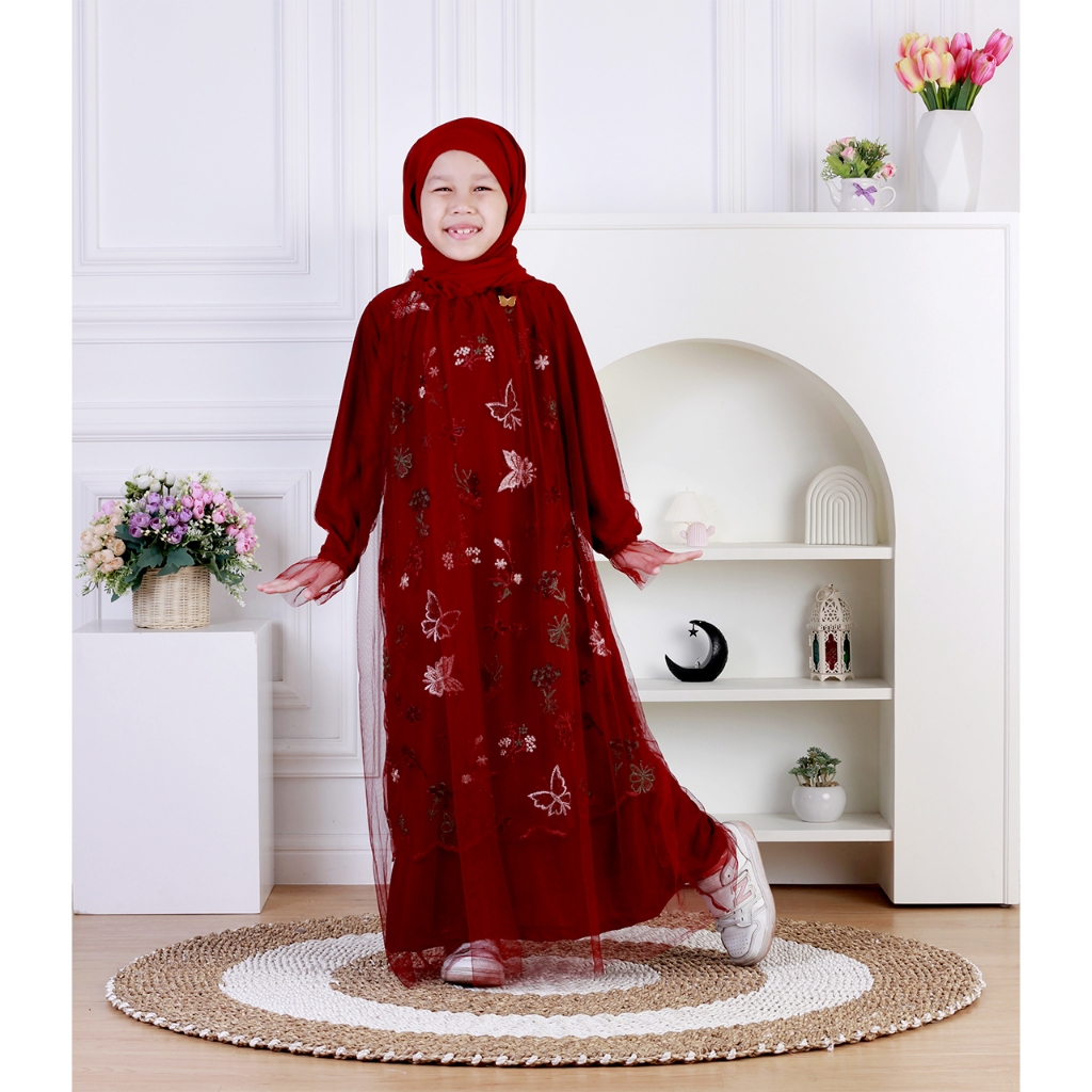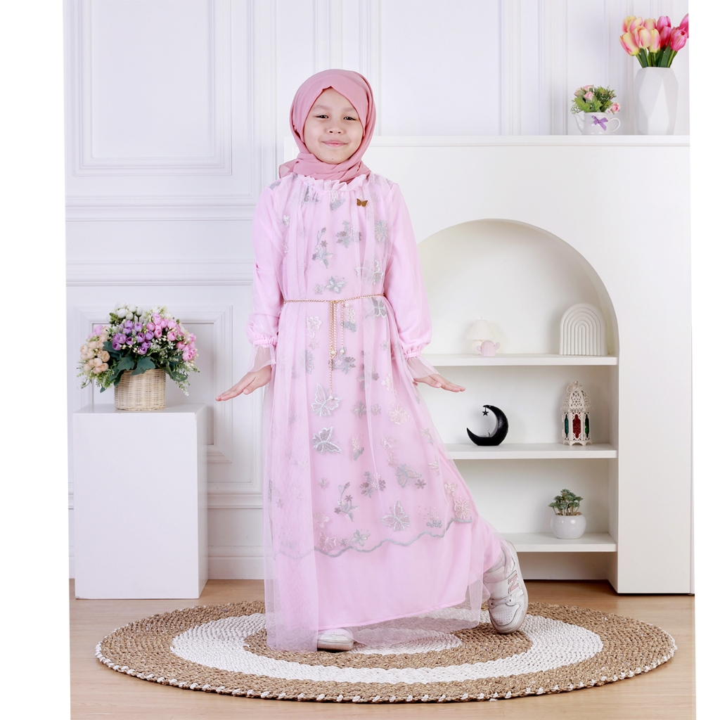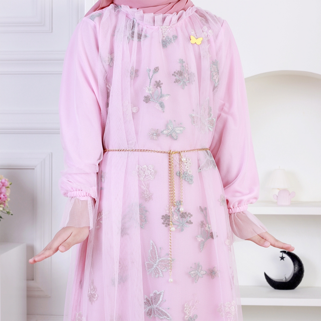 Dungdungkids Gamis Anak Celmira Tile Bordir Mix Tile Polos Free Belt Pashmina Tali 3 - 14 Tahun