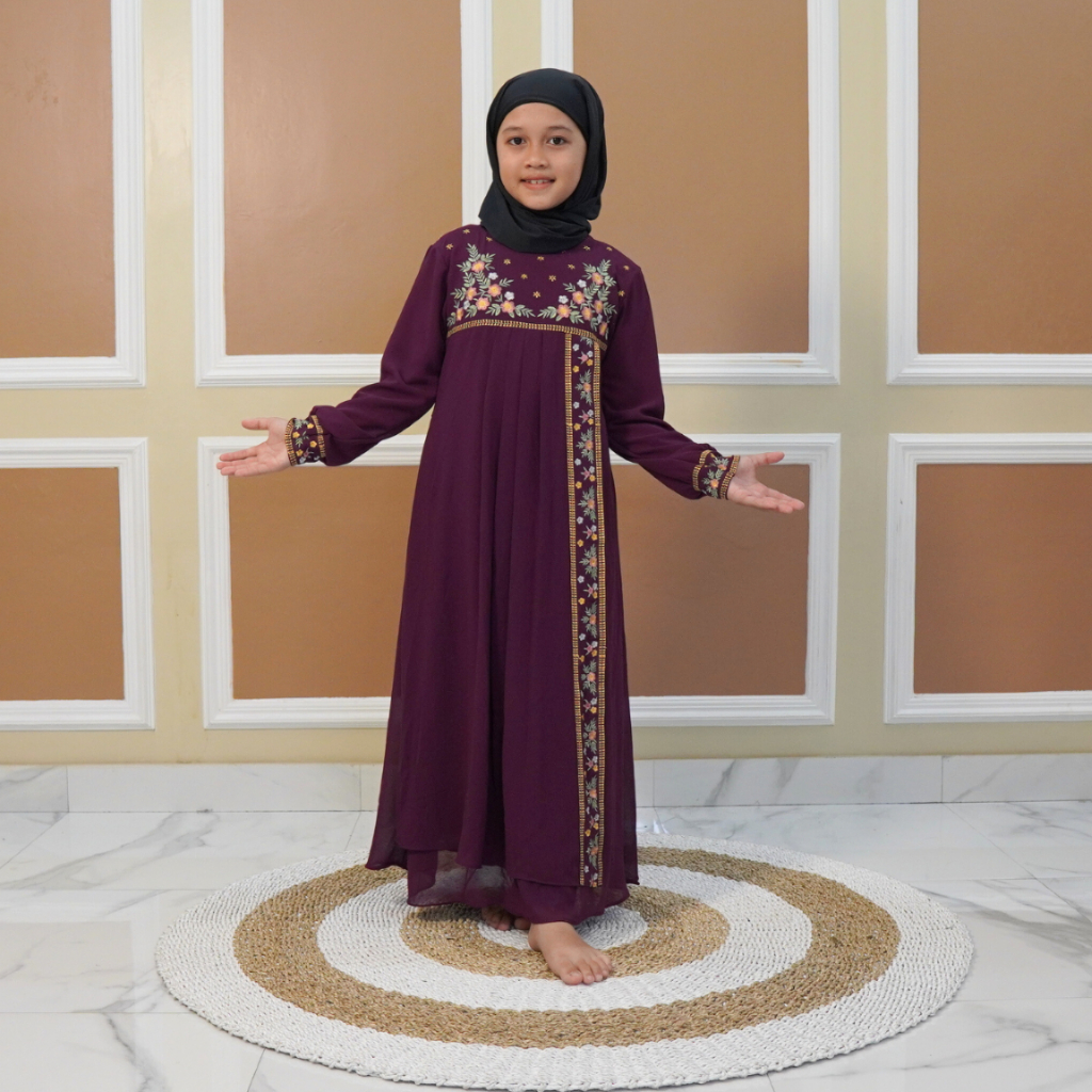 ELRAFFIP Gamis Anak Bordir Langsung Dibahan Nirmala Dress Ceruti Babydoll Premiun full puring Kaos