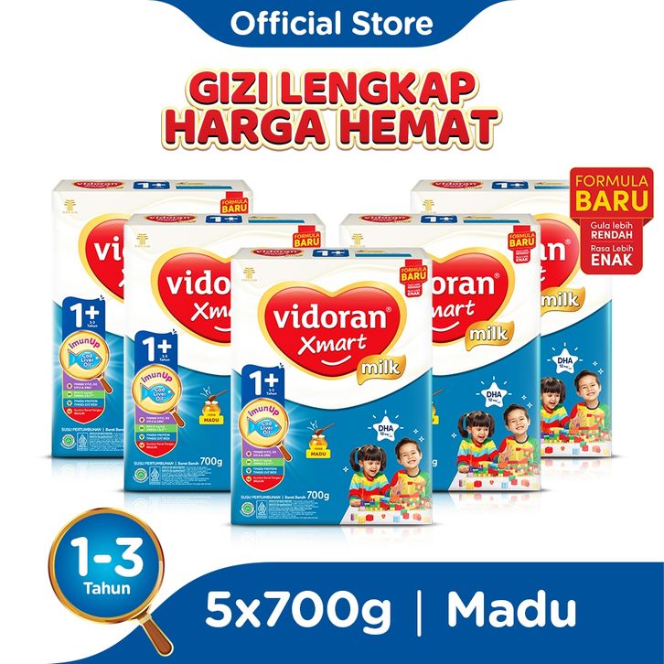 Vidoran Xmart 1+ Madu 700gr Susu Formula Pertumbuhan Anak 1-3 Tahun - 5 Box (Exp: 07.2026)
