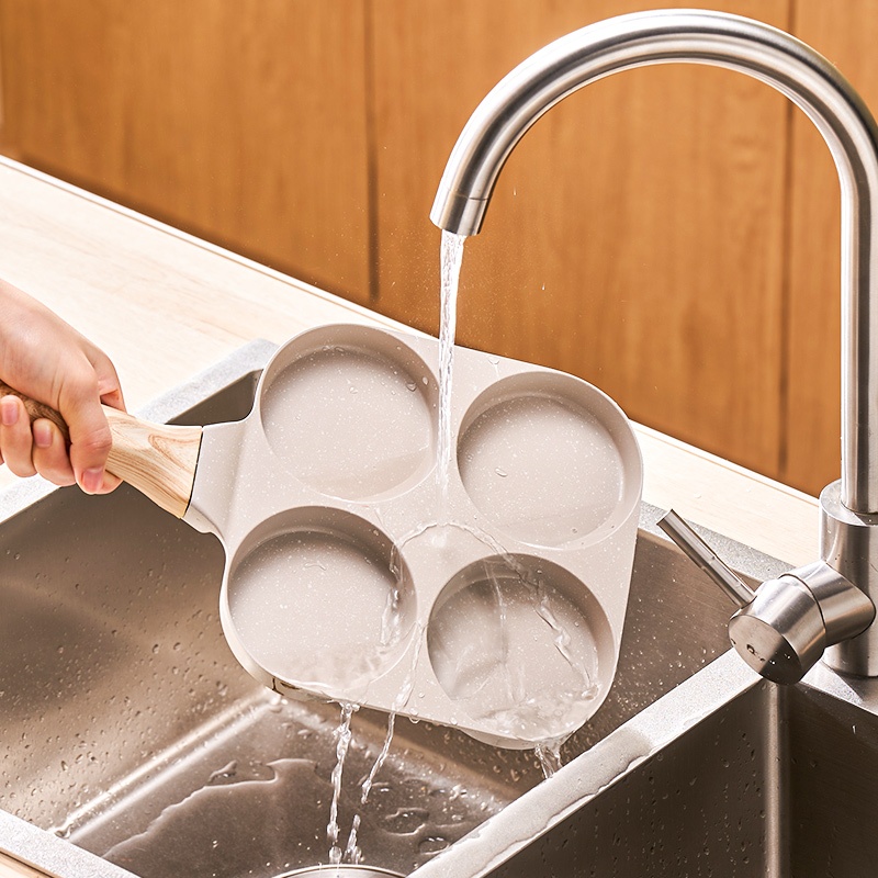 TDT - Pancake 4 Lubang Marble Crem Egg Pan Pancake Wajan 4 Lubang Granit Anti Lengket Cetakan Kue Omelette Telur Ceplok