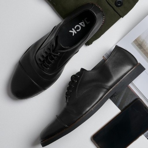 DP 0 HARRISON BLACK |MANNEEDME X JACK| SEPATU PANTOFEL PRIA FORMAL - FULLBLACK, 42