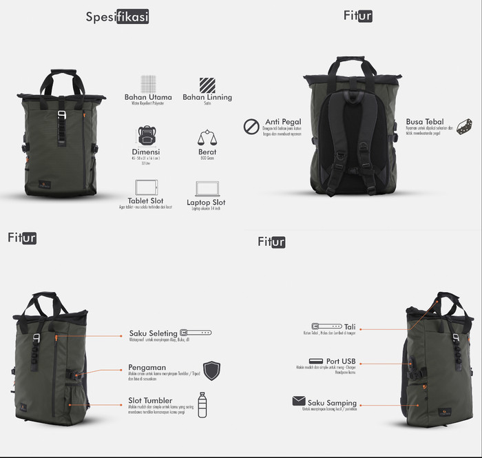 DP 0 LANSPRESADO ARMY |MNM X URBAN| TAS RANSEL PRIA WANITA TAS BACKPACK ORI - ARMY