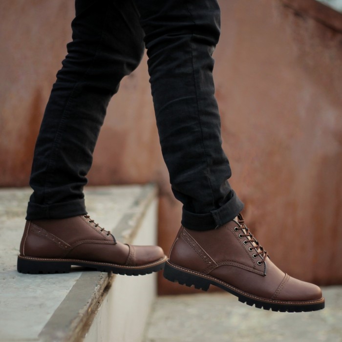 DP 0 ACOUSTIC BROWN (KULIT ASLI) |MNM X REYL| SEPATU SAFETY BOOTS PRIA ORI - HITAM, 45