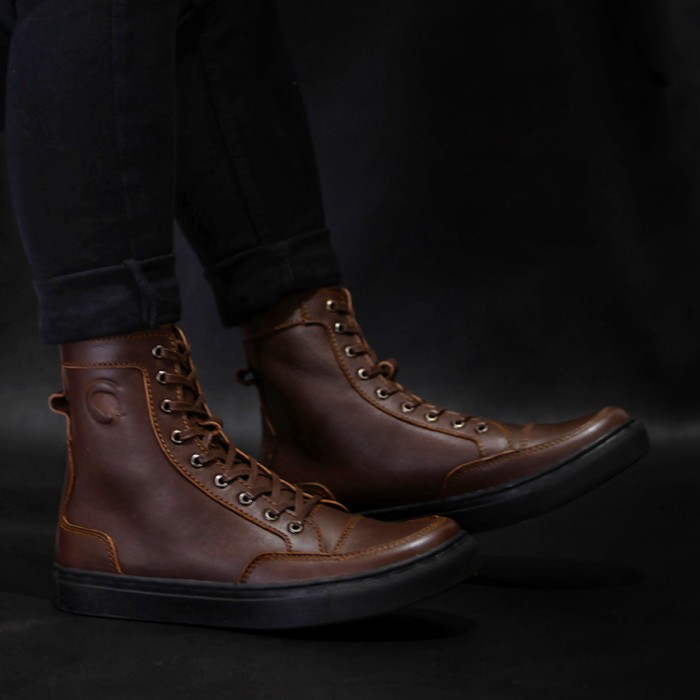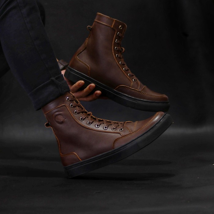 DP 0 BRATTA BROWN (KULIT ASLI) |MNM X GREATA| SEPATU SAFETY BOOTS PRIA ORI - BLACK, 40
