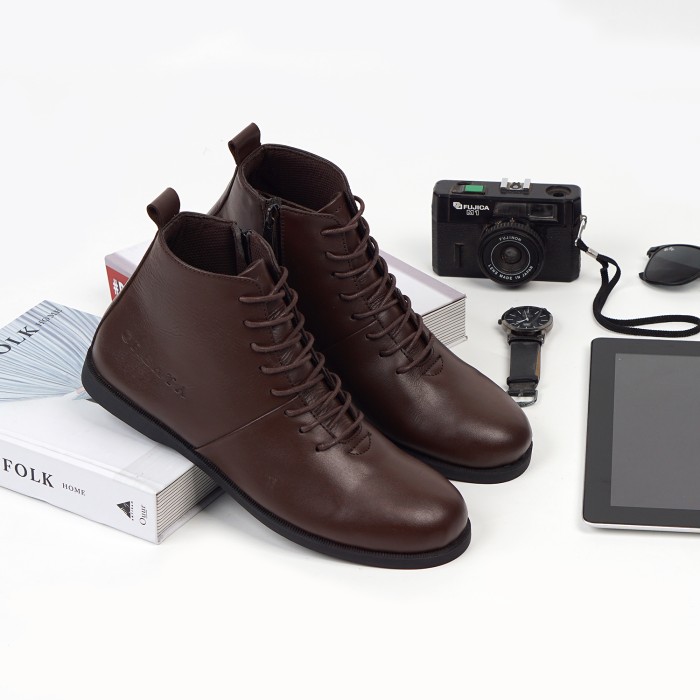 DP 0 SVERKER BROWN (KULIT ASLI) |MANNEEDME X GREATA| SEPATU BOOTS PRIA ORI - CAMEL, 40