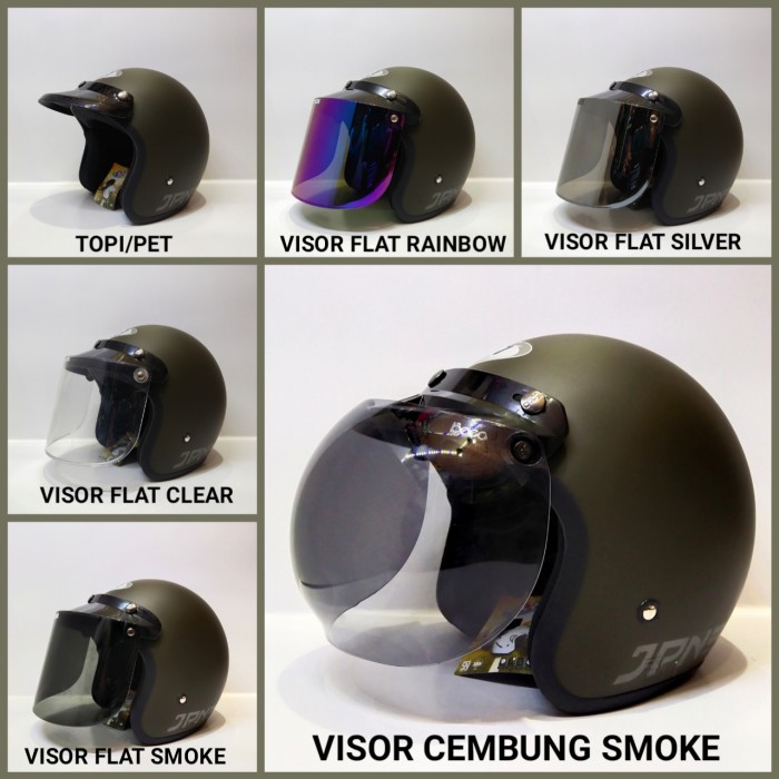 DP 0 HELM JPN RETRO BOGO ARC ORIGINAL HIJAU ARMY DOP PET TOPI NO KC, M