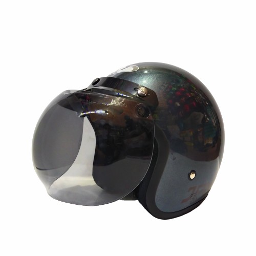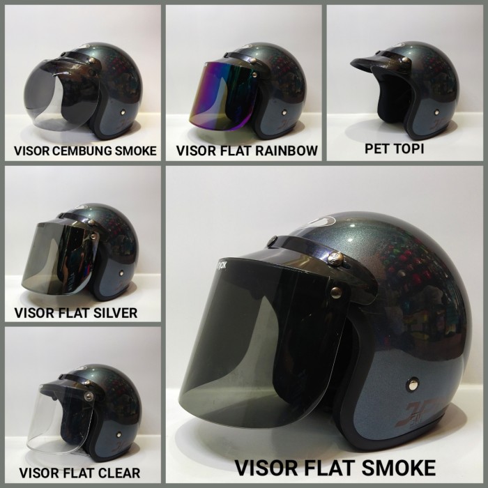 DP 0 HELM JPN BOGO RETRO ARC ORIGINAL ALLGREY METALIK FLAT VISOR PET TOPI NO KC, M
