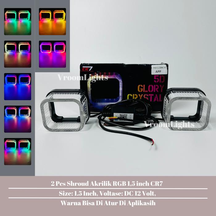 DP 0CR7 SEPASANG SHROUD AKRILIK RGB APLIKASI 1,5 INCH PREMIUM CHRYSTAL EYE RGB APP BANYAK MODE KHUSUS BILED MATRIX X1