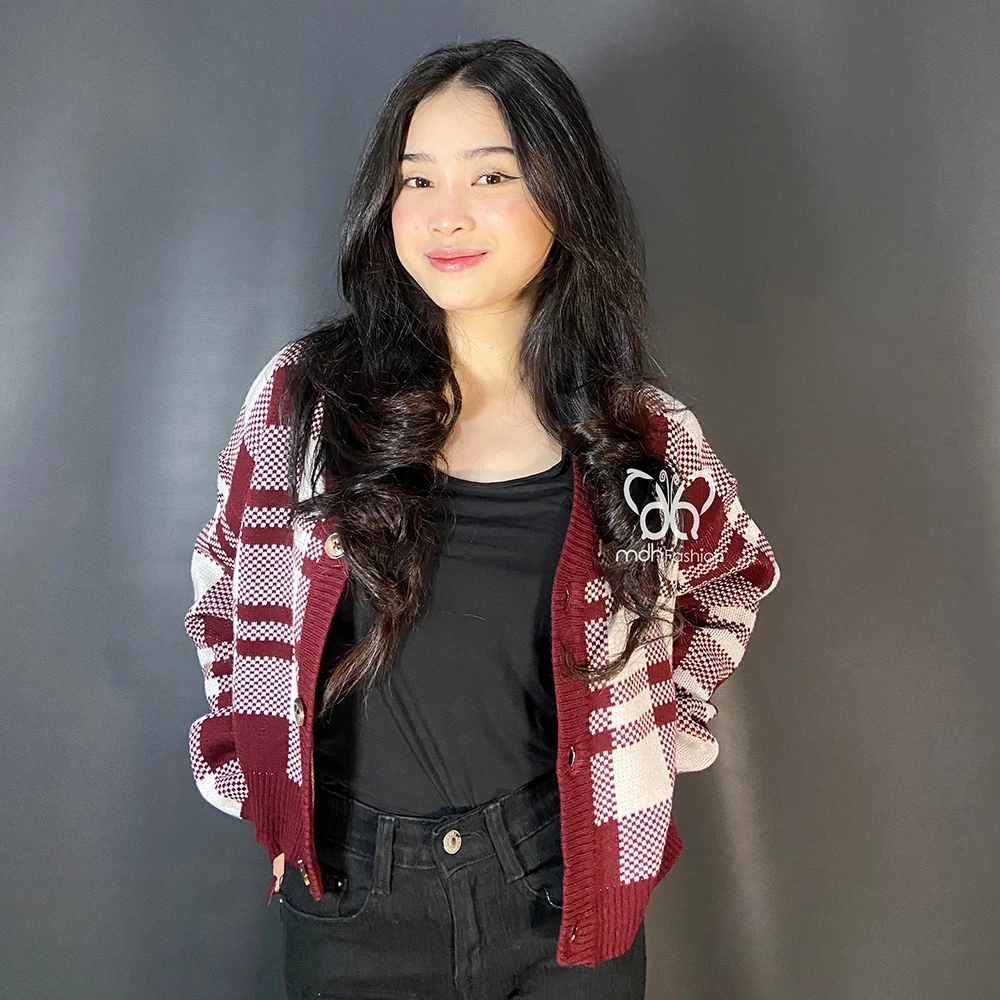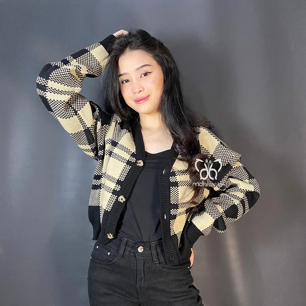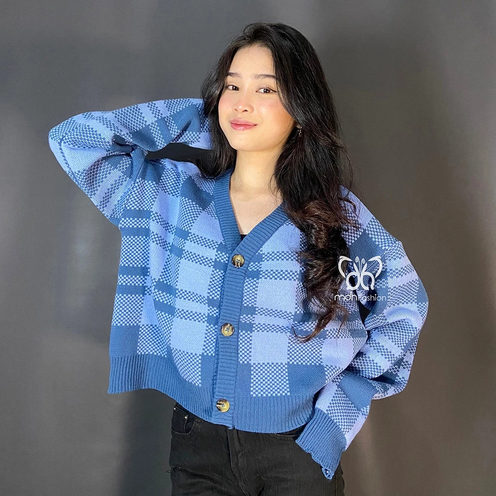 Cardigan Wanita Rajut Crop Motif Kotak Kotak Oizza Warna Series Premium Cardigan Korean Style Lengan Panjang Terlaris